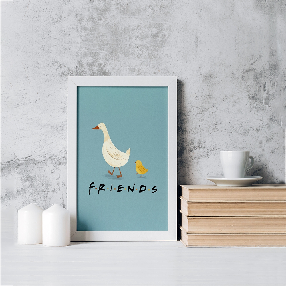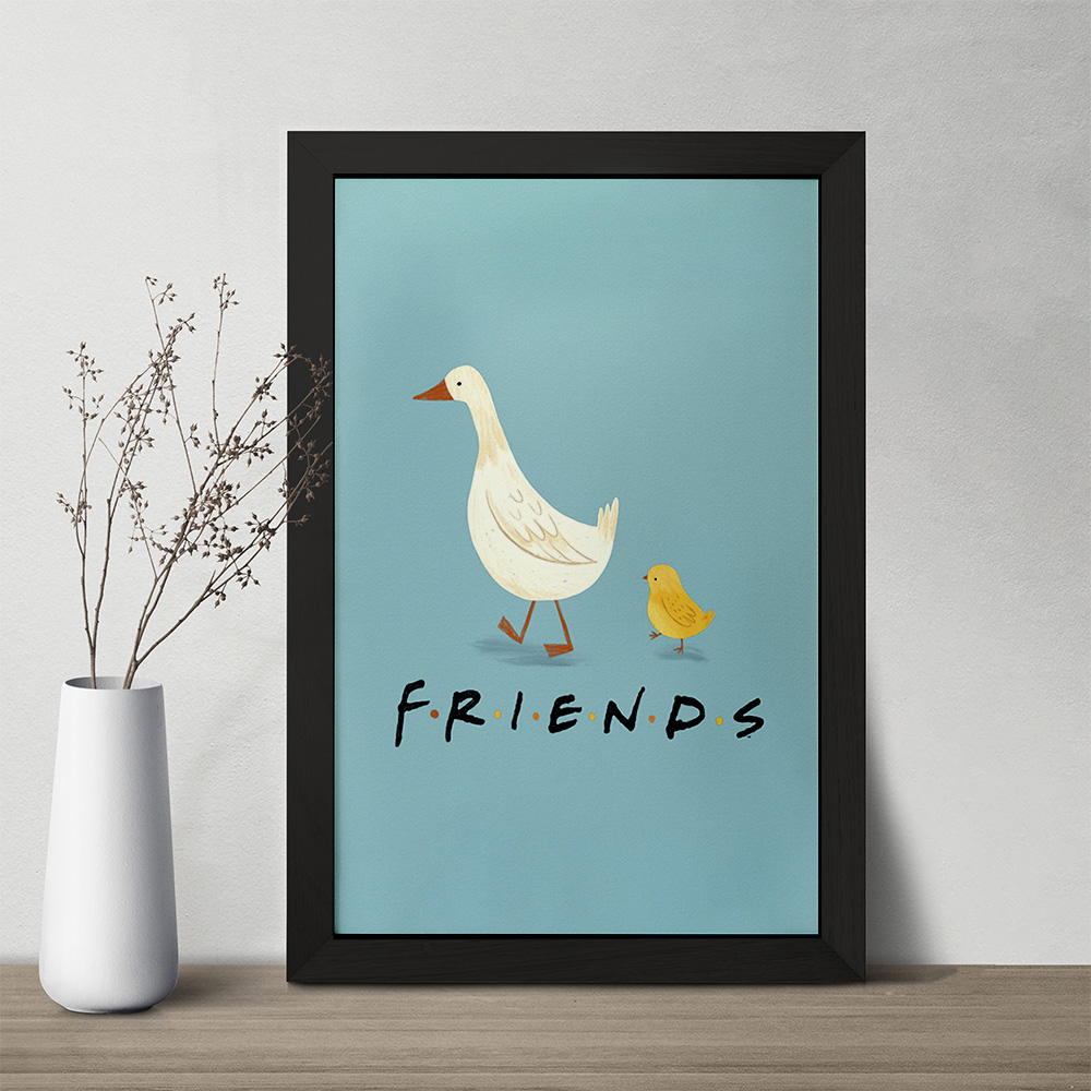 تابلو یا قاب عکس فرندز Friends خندالو در ابعاد مختلف با استفاده از بهترین برند پروفیل پی وی سی دو سانتی متری بسیار مرغوب، تولید شده اند و در مونتاژ و نصب آنها نهایت دقت در قرارگیری هر چه دقیق تر لبه ها به یکدیگر صورت گرفته است. همچنین در پشت قاب ها گیره ای برای اتصال راحت به دیوار تعبیه شده است. چاپ طرح تابلوی فرندز Friends با بالاترین کیفیت بوسیله چاپگرهای دیجیتال شش رنگ و کاغذ با کیفیت عکاسی انجام شده و بر روی آن شیشه ای با کیفیت و شفاف در سطح قاب قرار گرفته که از کاغذ عکس محافظت میکند. بسته بندی تابلوها جعبه های مقاوم و محکمی بوده که علاوه بر محافظتی که از بدنه قاب می کند، ظاهر جذابی دارد و تابلوی فرندز Friends را بدل به محصولی مناسب هدیه کرده است. تابلوهای خندالو با تنوع طرحی بسیار بالا شامل تابلو های دکوراتیو قابل استفاده در اتاق کودک، محل کار و منازل می باشد که سلیقه هر مخاطبی را پوشش می دهد، ضمن اینکه امکان تعویض عکس موجود در قاب وجود داشته و می توان عکس های خانوادگی و … را نیز در آن قرار داد.