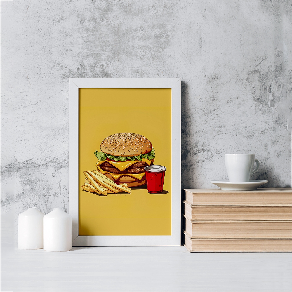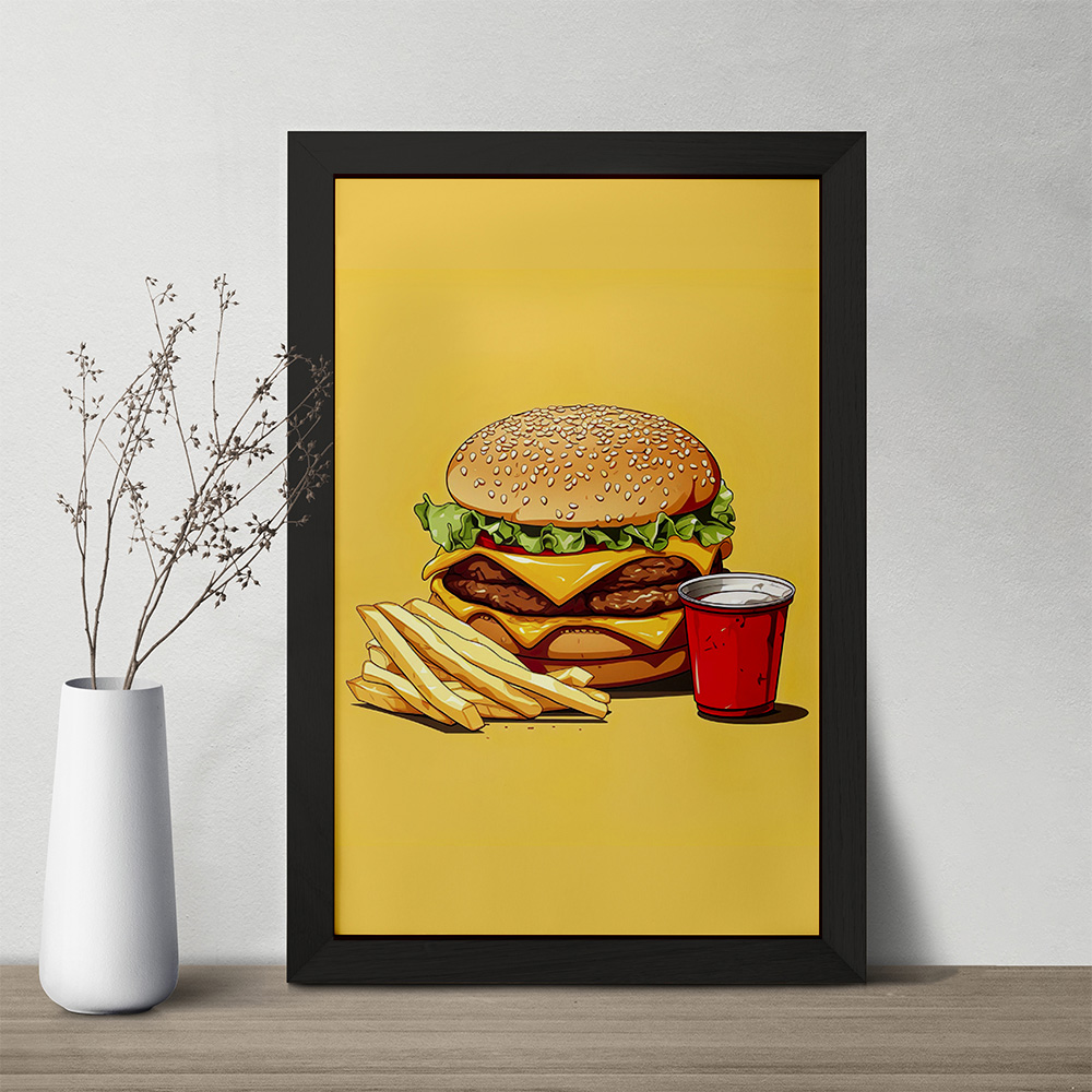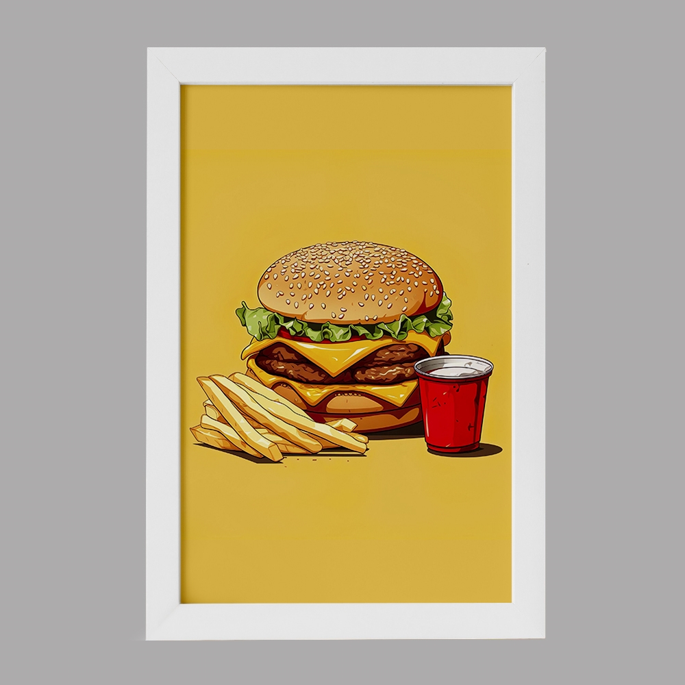 تابلو یا قاب عکس فست فود (Fast Food) خندالو در ابعاد مختلف با استفاده از بهترین برند پروفیل پی وی سی دو سانتی متری بسیار مرغوب، تولید شده اند و در مونتاژ و نصب آنها نهایت دقت در قرارگیری هر چه دقیق تر لبه ها به یکدیگر صورت گرفته است. همچنین در پشت قاب ها گیره ای برای اتصال راحت به دیوار تعبیه شده است.