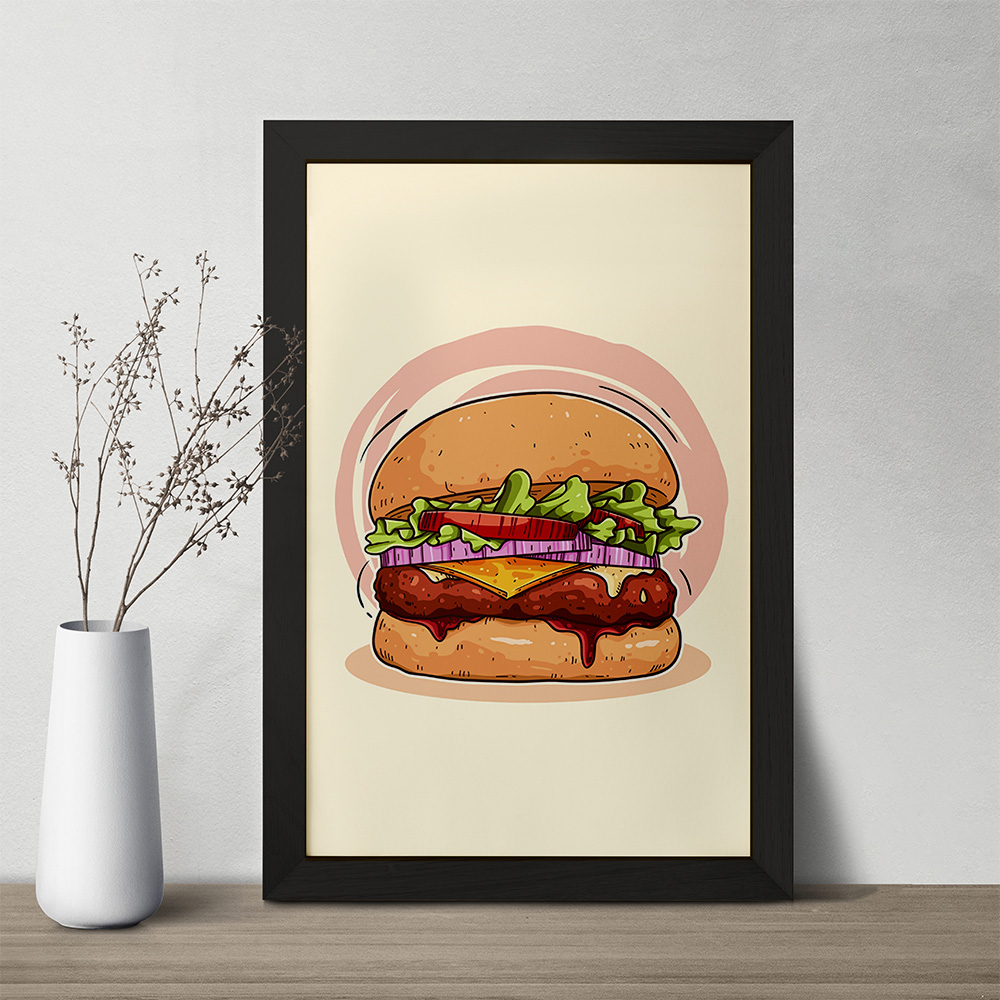 تابلو یا قاب عکس فست فود (Fast Food) خندالو در ابعاد مختلف با استفاده از بهترین برند پروفیل پی وی سی دو سانتی متری بسیار مرغوب، تولید شده اند و در مونتاژ و نصب آنها نهایت دقت در قرارگیری هر چه دقیق تر لبه ها به یکدیگر صورت گرفته است. همچنین در پشت قاب ها گیره ای برای اتصال راحت به دیوار تعبیه شده است.