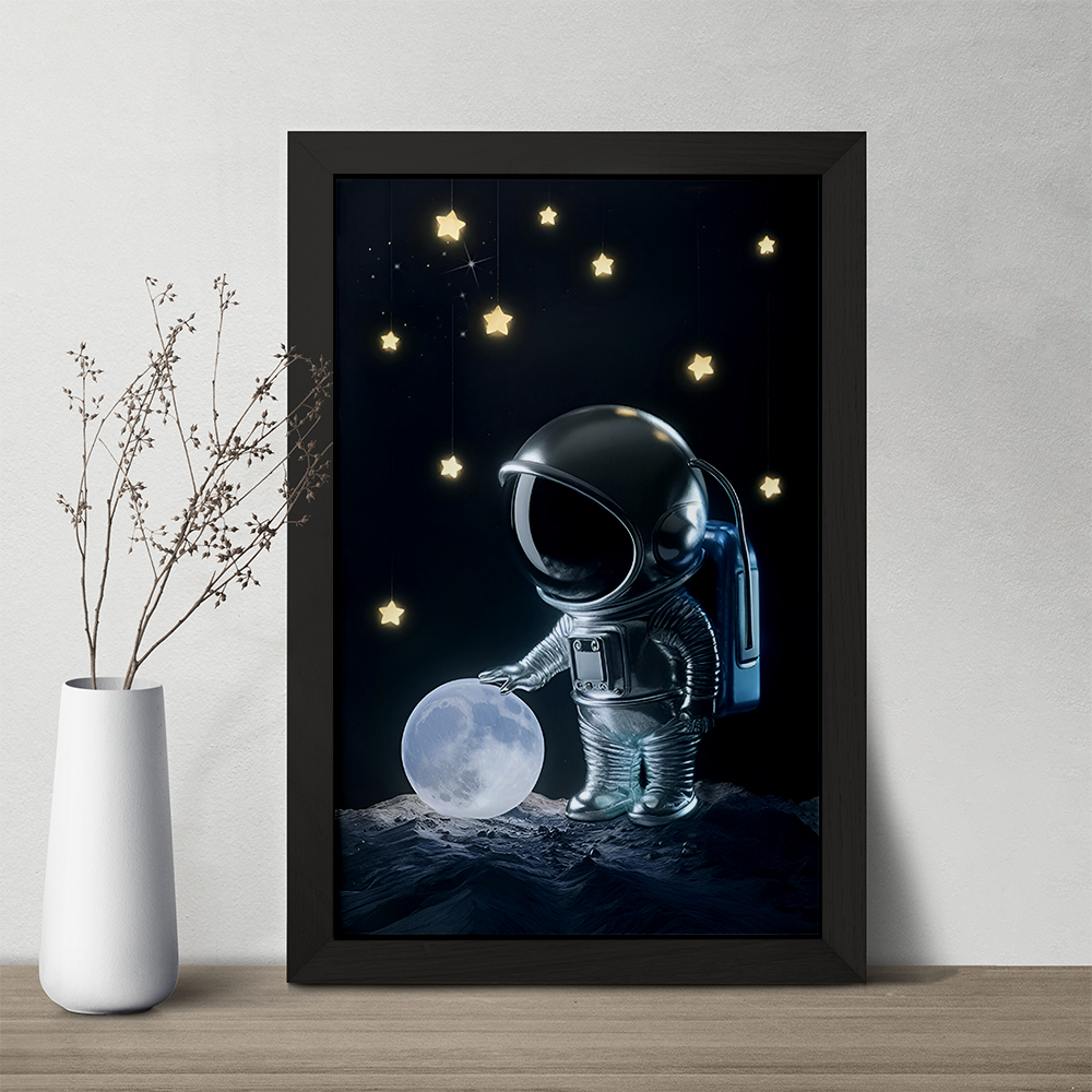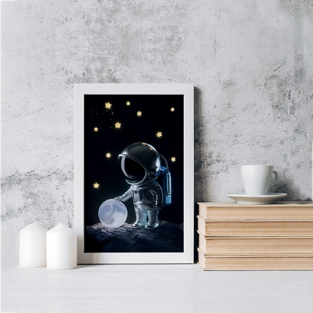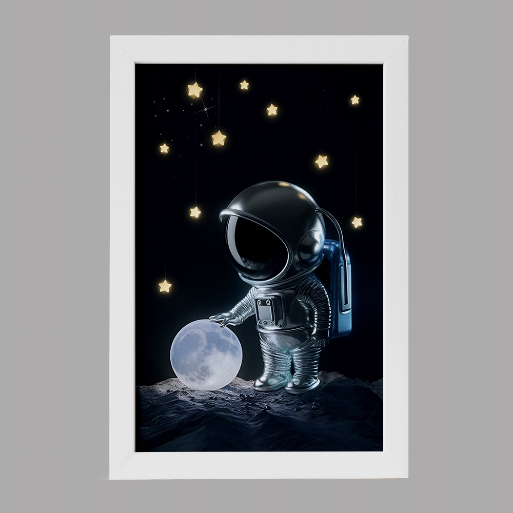 تابلو یا قاب عکس فضانورد و ماه خندالو در ابعاد مختلف با استفاده از بهترین برند پروفیل پی وی سی دو سانتی متری بسیار مرغوب، تولید شده اند و در مونتاژ و نصب آنها نهایت دقت در قرارگیری هر چه دقیق تر لبه ها به یکدیگر صورت گرفته است. همچنین در پشت قاب ها گیره ای برای اتصال راحت به دیوار تعبیه شده است. چاپ طرح تابلوی فضانورد و ماه با بالاترین کیفیت بوسیله چاپگرهای دیجیتال شش رنگ و کاغذ با کیفیت عکاسی انجام شده و بر روی آن شیشه ای با کیفیت و شفاف در سطح قاب قرار گرفته که از کاغذ عکس محافظت میکند. بسته بندی تابلوها جعبه های مقاوم و محکمی بوده که علاوه بر محافظتی که از بدنه قاب می کند، ظاهر جذابی دارد و تابلوی فضانورد و ماه را بدل به محصولی مناسب هدیه کرده است. تابلوهای خندالو با تنوع طرحی بسیار بالا شامل تابلو های دکوراتیو قابل استفاده در اتاق کودک، محل کار و منازل می باشد که سلیقه هر مخاطبی را پوشش می دهد، ضمن اینکه امکان تعویض عکس موجود در قاب وجود داشته و می توان عکس های خانوادگی و … را نیز در آن قرار داد.