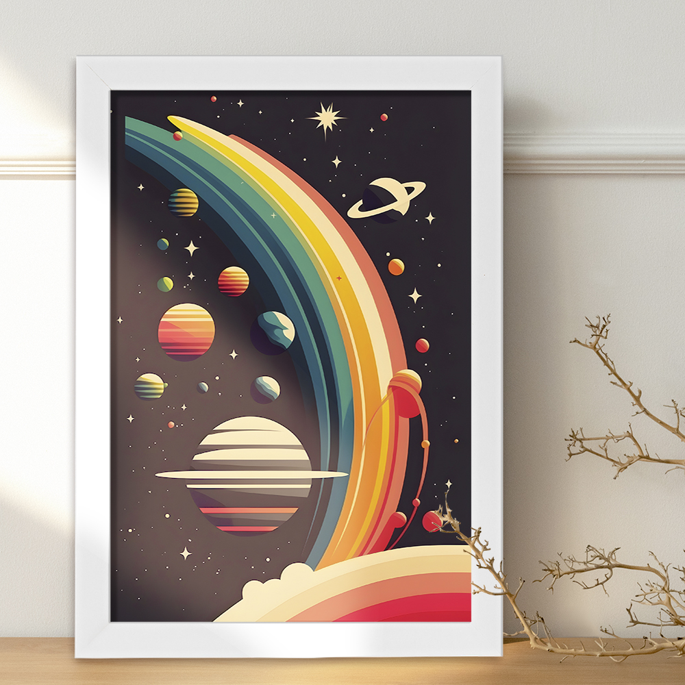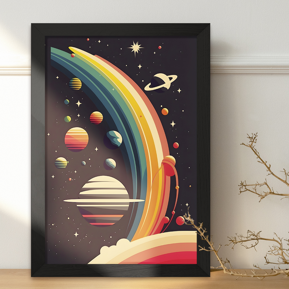 تابلو یا قاب عکس فضا خندالو در ابعاد مختلف با استفاده از بهترین برند پروفیل پی وی سی دو سانتی متری بسیار مرغوب، تولید شده اند و در مونتاژ و نصب آنها نهایت دقت در قرارگیری هر چه دقیق تر لبه ها به یکدیگر صورت گرفته است. همچنین در پشت قاب ها گیره ای برای اتصال راحت به دیوار تعبیه شده است. چاپ طرح تابلوی فضا با بالاترین کیفیت بوسیله چاپگرهای دیجیتال شش رنگ و کاغذ با کیفیت عکاسی انجام شده و بر روی آن شیشه ای با کیفیت و شفاف در سطح قاب قرار گرفته که از کاغذ عکس محافظت میکند. بسته بندی تابلوها جعبه های مقاوم و محکمی بوده که علاوه بر محافظتی که از بدنه قاب می کند، ظاهر جذابی دارد و تابلوی فضا را بدل به محصولی مناسب هدیه کرده است. تابلوهای خندالو با تنوع طرحی بسیار بالا شامل تابلو های دکوراتیو قابل استفاده در اتاق کودک، محل کار و منازل می باشد که سلیقه هر مخاطبی را پوشش می دهد، ضمن اینکه امکان تعویض عکس موجود در قاب وجود داشته و می توان عکس های خانوادگی و … را نیز در آن قرار داد.