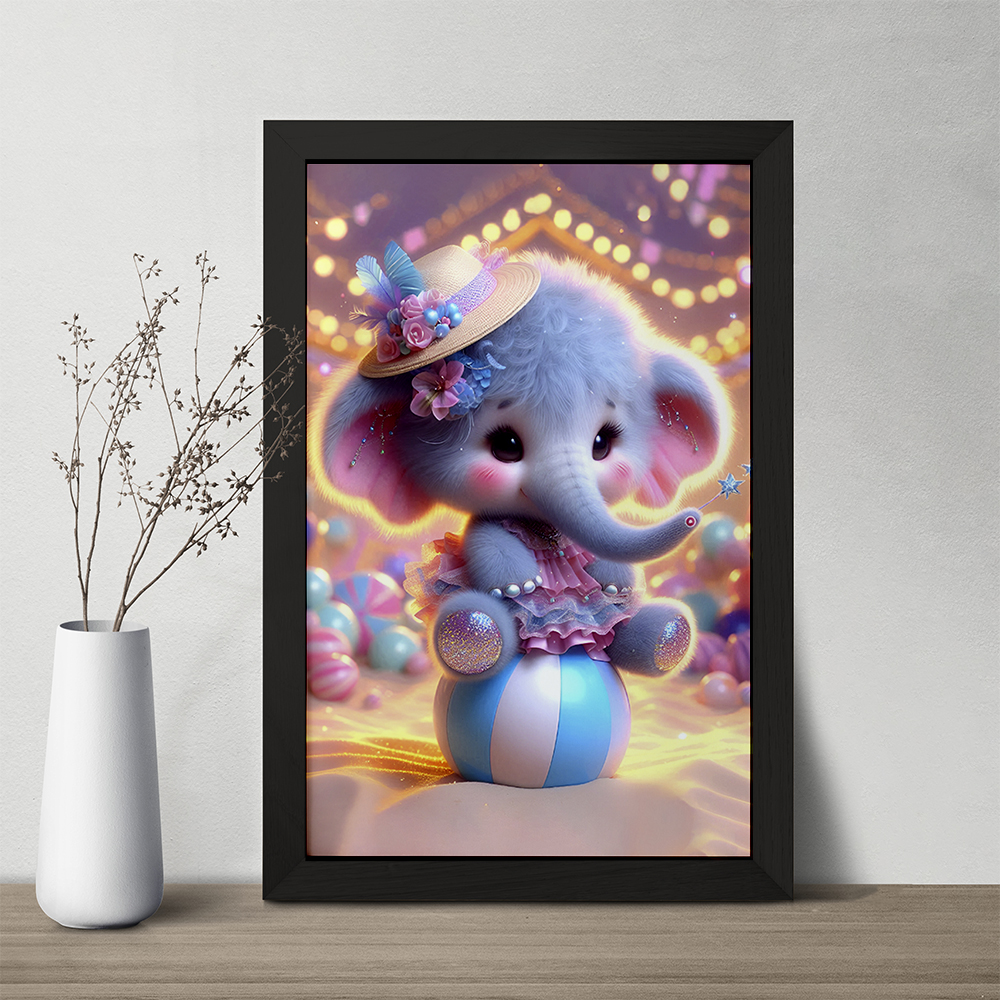 تابلو یا قاب عکس فیل کیوت خندالو در ابعاد مختلف با استفاده از بهترین برند پروفیل پی وی سی دو سانتی متری بسیار مرغوب، تولید شده اند و در مونتاژ و نصب آنها نهایت دقت در قرارگیری هر چه دقیق تر لبه ها به یکدیگر صورت گرفته است. همچنین در پشت قاب ها گیره ای برای اتصال راحت به دیوار تعبیه شده است.