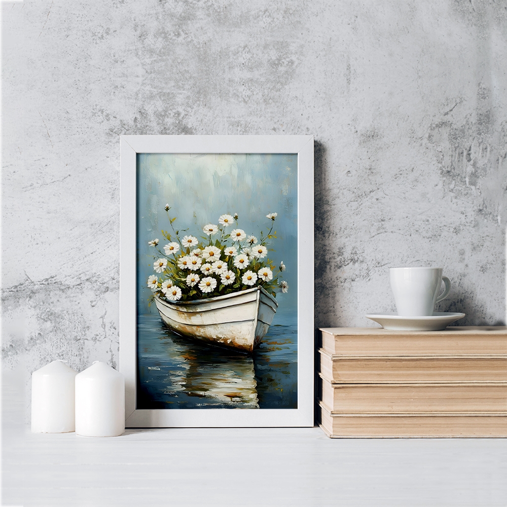 تابلو یا قاب عکس قایق گل بابونه خندالو در ابعاد مختلف با استفاده از بهترین برند پروفیل پی وی سی دو سانتی متری بسیار مرغوب، تولید شده اند و در مونتاژ و نصب آنها نهایت دقت در قرارگیری هر چه دقیق تر لبه ها به یکدیگر صورت گرفته است. همچنین در پشت قاب ها گیره ای برای اتصال راحت به دیوار تعبیه شده است.