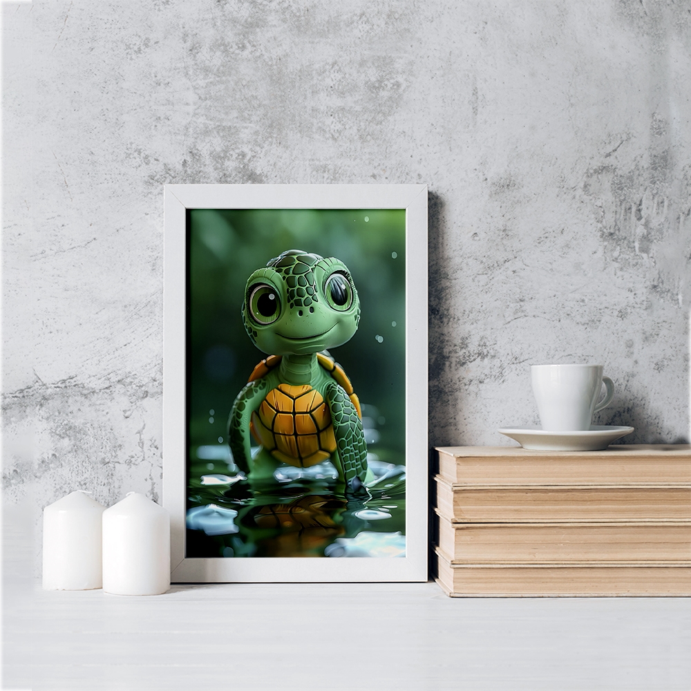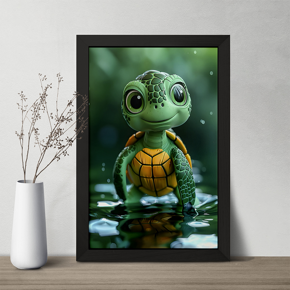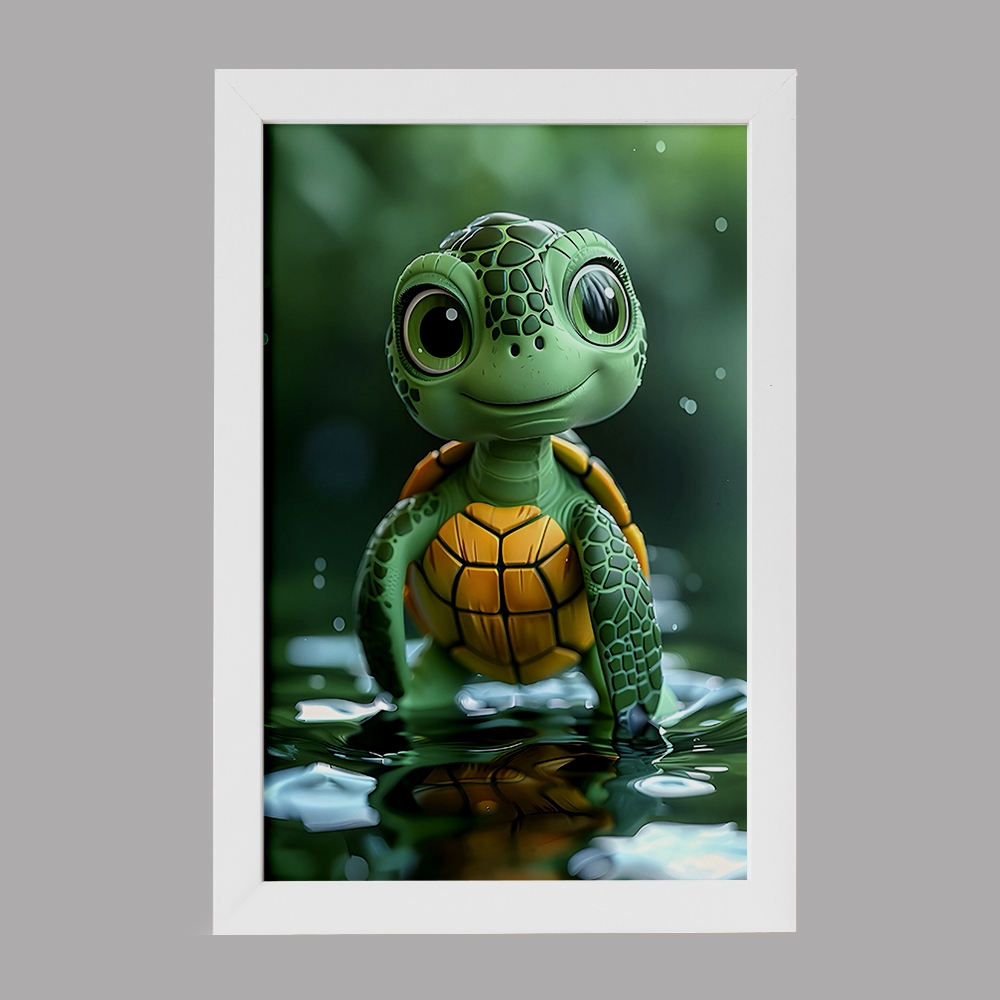 تابلو یا قاب عکس لاکپشت کیوت خندالو در ابعاد مختلف با استفاده از بهترین برند پروفیل پی وی سی دو سانتی متری بسیار مرغوب، تولید شده اند و در مونتاژ و نصب آنها نهایت دقت در قرارگیری هر چه دقیق تر لبه ها به یکدیگر صورت گرفته است. همچنین در پشت قاب ها گیره ای برای اتصال راحت به دیوار تعبیه شده است.