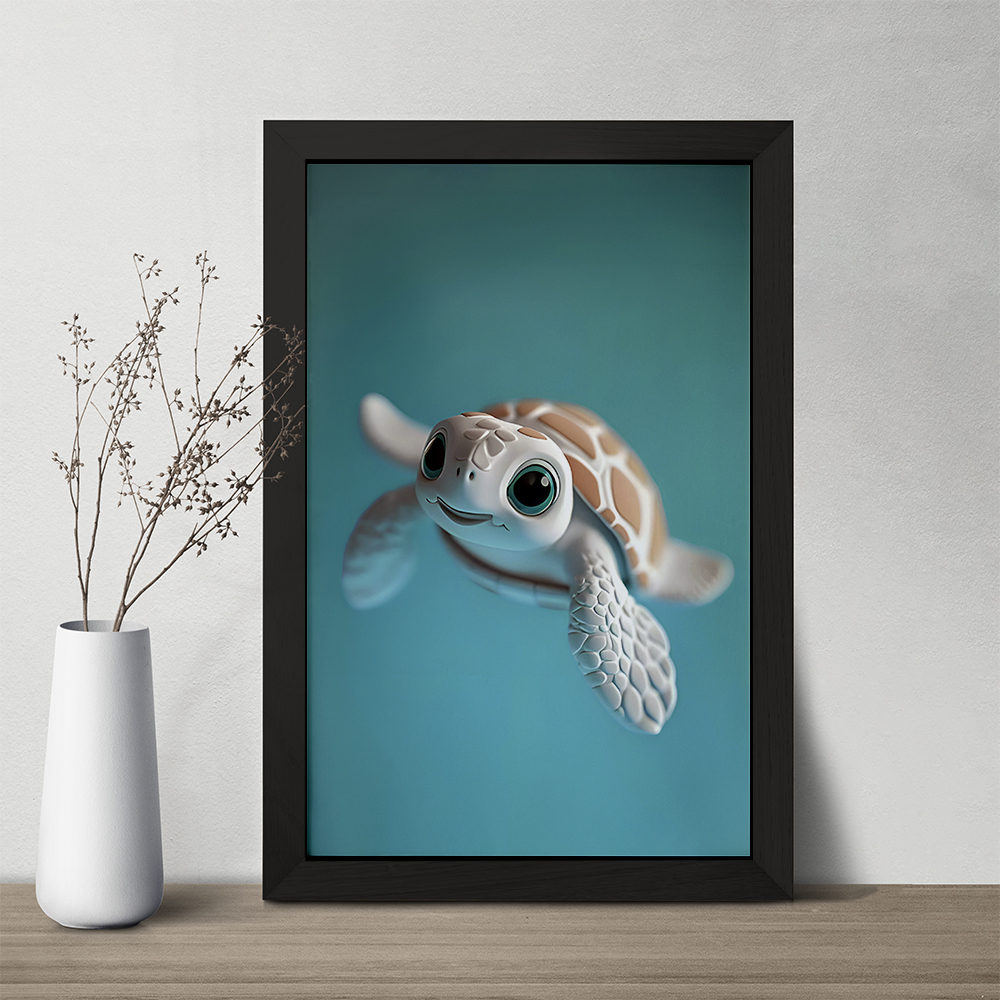 تابلو یا قاب عکس لاکپشت کیوت خندالو در ابعاد مختلف با استفاده از بهترین برند پروفیل پی وی سی دو سانتی متری بسیار مرغوب، تولید شده اند و در مونتاژ و نصب آنها نهایت دقت در قرارگیری هر چه دقیق تر لبه ها به یکدیگر صورت گرفته است. همچنین در پشت قاب ها گیره ای برای اتصال راحت به دیوار تعبیه شده است.