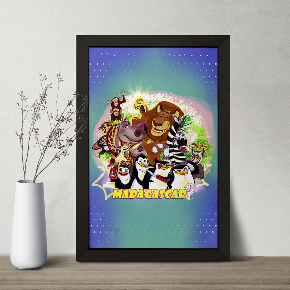 تابلو یا قاب عکس ماداگاسکار خندالو در ابعاد مختلف با استفاده از بهترین برند پروفیل پی وی سی دو سانتی متری بسیار مرغوب، تولید شده اند و در مونتاژ و نصب آنها نهایت دقت در قرارگیری هر چه دقیق تر لبه ها به یکدیگر صورت گرفته است. همچنین در پشت قاب ها گیره ای برای اتصال راحت به دیوار تعبیه شده است. چاپ طرح تابلوی ماداگاسکار با بالاترین کیفیت بوسیله چاپگرهای دیجیتال شش رنگ و کاغذ با کیفیت عکاسی انجام شده و بر روی آن شیشه ای با کیفیت و شفاف در سطح قاب قرار گرفته که از کاغذ عکس محافظت میکند. بسته بندی تابلوها جعبه های مقاوم و محکمی بوده که علاوه بر محافظتی که از بدنه قاب می کند، ظاهر جذابی دارد و تابلوی ماداگاسکار را بدل به محصولی مناسب هدیه کرده است. تابلوهای خندالو با تنوع طرحی بسیار بالا شامل تابلو های دکوراتیو قابل استفاده در اتاق کودک، محل کار و منازل می باشد که سلیقه هر مخاطبی را پوشش می دهد، ضمن اینکه امکان تعویض عکس موجود در قاب وجود داشته و می توان عکس های خانوادگی و … را نیز در آن قرار داد.