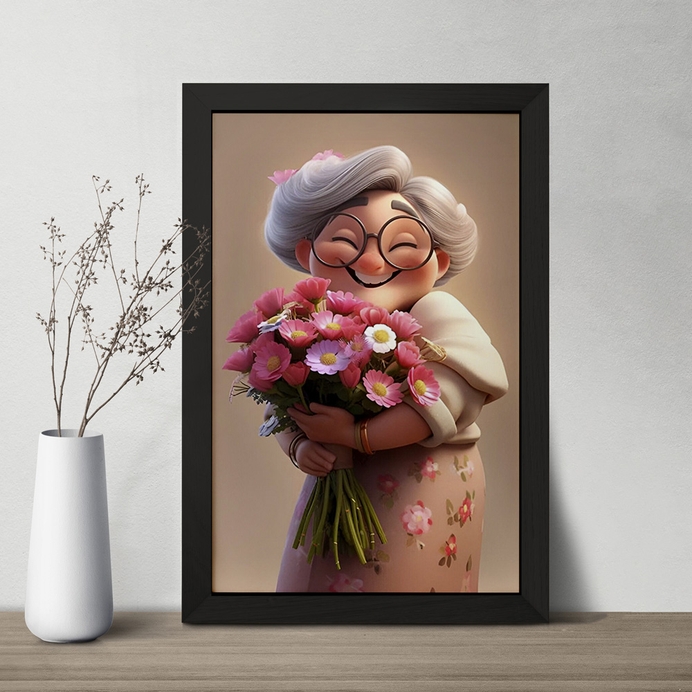 تابلو یا قاب عکس مادربزرگ خندالو در ابعاد مختلف با استفاده از بهترین برند پروفیل پی وی سی دو سانتی متری بسیار مرغوب، تولید شده اند و در مونتاژ و نصب آنها نهایت دقت در قرارگیری هر چه دقیق تر لبه ها به یکدیگر صورت گرفته است. همچنین در پشت قاب ها گیره ای برای اتصال راحت به دیوار تعبیه شده است.