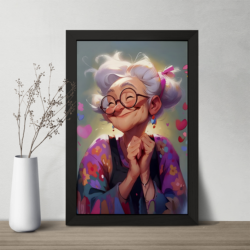 تابلو یا قاب عکس مادربزرگ خندالو در ابعاد مختلف با استفاده از بهترین برند پروفیل پی وی سی دو سانتی متری بسیار مرغوب، تولید شده اند و در مونتاژ و نصب آنها نهایت دقت در قرارگیری هر چه دقیق تر لبه ها به یکدیگر صورت گرفته است. همچنین در پشت قاب ها گیره ای برای اتصال راحت به دیوار تعبیه شده است. چاپ طرح تابلوی مادربزرگ با بالاترین کیفیت بوسیله چاپگرهای دیجیتال شش رنگ و کاغذ با کیفیت عکاسی انجام شده و بر روی آن شیشه ای با کیفیت و شفاف در سطح قاب قرار گرفته که از کاغذ عکس محافظت میکند. بسته بندی تابلوها جعبه های مقاوم و محکمی بوده که علاوه بر محافظتی که از بدنه قاب می کند، ظاهر جذابی دارد و تابلوی مادربزرگ را بدل به محصولی مناسب هدیه کرده است. تابلوهای خندالو با تنوع طرحی بسیار بالا شامل تابلو های دکوراتیو قابل استفاده در اتاق کودک، محل کار و منازل می باشد که سلیقه هر مخاطبی را پوشش می دهد، ضمن اینکه امکان تعویض عکس موجود در قاب وجود داشته و می توان عکس های خانوادگی و … را نیز در آن قرار داد.