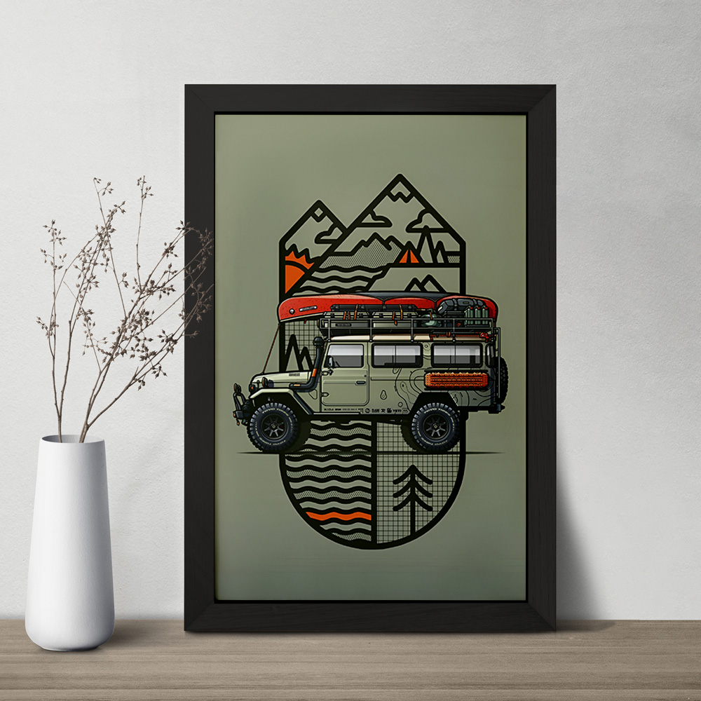 تابلو یا قاب عکس ماشین آفرود خندالو در ابعاد مختلف با استفاده از بهترین برند پروفیل پی وی سی دو سانتی متری بسیار مرغوب، تولید شده اند و در مونتاژ و نصب آنها نهایت دقت در قرارگیری هر چه دقیق تر لبه ها به یکدیگر صورت گرفته است. همچنین در پشت قاب ها گیره ای برای اتصال راحت به دیوار تعبیه شده است.