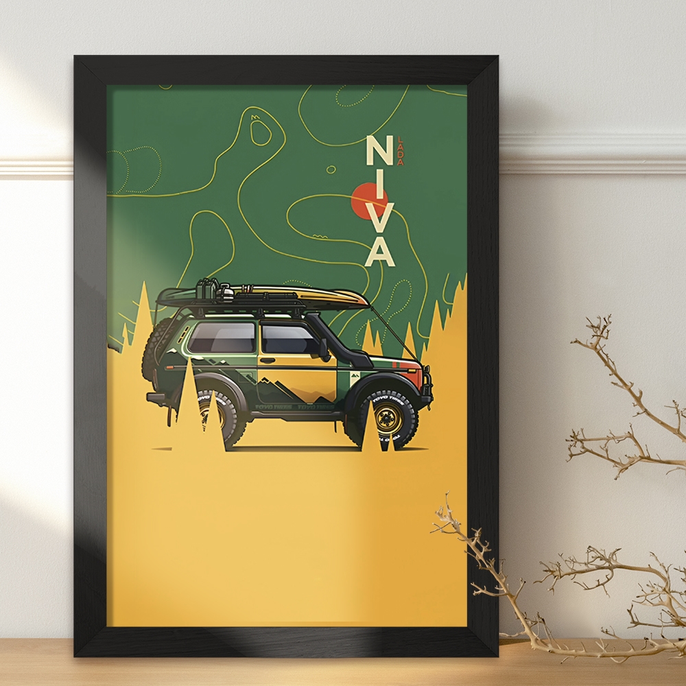 تابلو یا قاب عکس ماشین آفرود (Off Road) خندالو در ابعاد مختلف با استفاده از بهترین برند پروفیل پی وی سی دو سانتی متری بسیار مرغوب، تولید شده اند و در مونتاژ و نصب آنها نهایت دقت در قرارگیری هر چه دقیق تر لبه ها به یکدیگر صورت گرفته است. همچنین در پشت قاب ها گیره ای برای اتصال راحت به دیوار تعبیه شده است.
