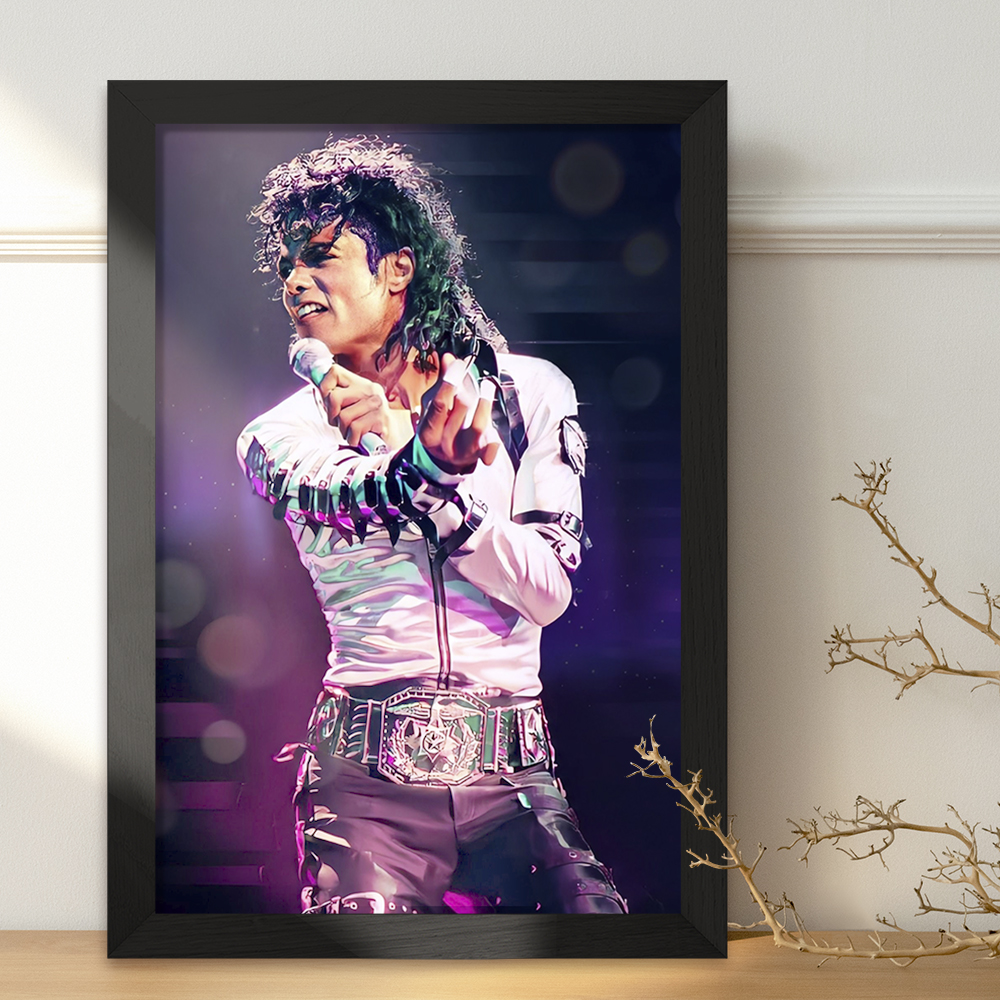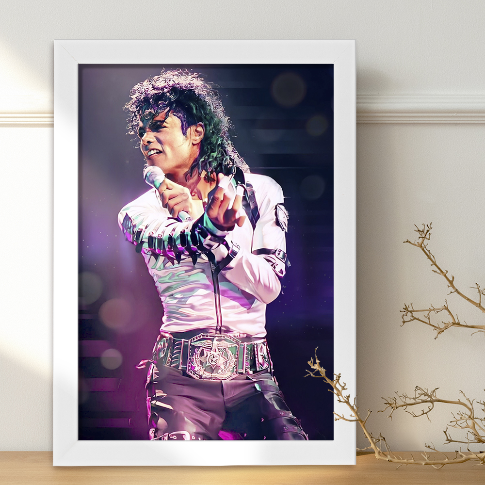 تابلو یا قاب عکس مایکل جکسون Michael Jackson خندالو در ابعاد مختلف با استفاده از بهترین برند پروفیل پی وی سی دو سانتی متری بسیار مرغوب، تولید شده اند و در مونتاژ و نصب آنها نهایت دقت در قرارگیری هر چه دقیق تر لبه ها به یکدیگر صورت گرفته است. همچنین در پشت قاب ها گیره ای برای اتصال راحت به دیوار تعبیه شده است.