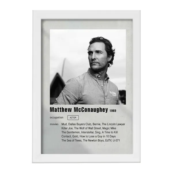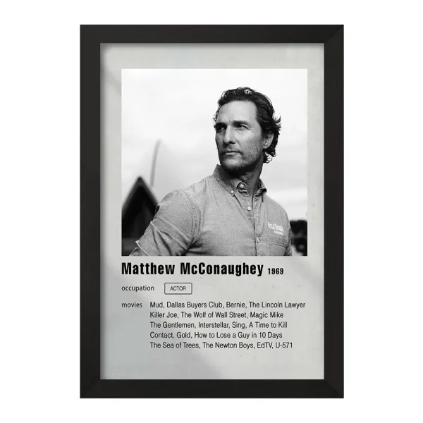 تابلو یا قاب عکس متیو مک کانهی (Matthew McConaughey) خندالو در ابعاد مختلف با استفاده از بهترین برند پروفیل پی وی سی دو سانتی متری بسیار مرغوب، تولید شده اند و در مونتاژ و نصب آنها نهایت دقت در قرارگیری هر چه دقیق تر لبه ها به یکدیگر صورت گرفته است. همچنین در پشت قاب ها گیره ای برای اتصال راحت به دیوار تعبیه شده است. چاپ طرح تابلوی متیو مک کانهی (Matthew McConaughey) با بالاترین کیفیت بوسیله چاپگرهای دیجیتال شش رنگ و کاغذ با کیفیت عکاسی انجام شده و بر روی آن شیشه ای با کیفیت و شفاف در سطح قاب قرار گرفته که از کاغذ عکس محافظت میکند. بسته بندی تابلوها جعبه های مقاوم و محکمی بوده که علاوه بر محافظتی که از بدنه قاب می کند، ظاهر جذابی دارد و تابلوی متیو مک کانهی (Matthew McConaughey) را بدل به محصولی مناسب هدیه کرده است. تابلوهای خندالو با تنوع طرحی بسیار بالا شامل تابلو های دکوراتیو قابل استفاده در اتاق کودک، محل کار و منازل می باشد که سلیقه هر مخاطبی را پوشش می دهد، ضمن اینکه امکان تعویض عکس موجود در قاب وجود داشته و می توان عکس های خانوادگی و … را نیز در آن قرار داد.