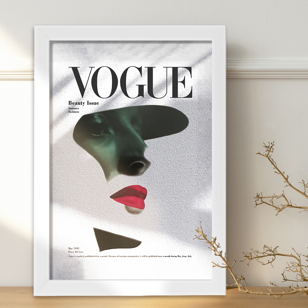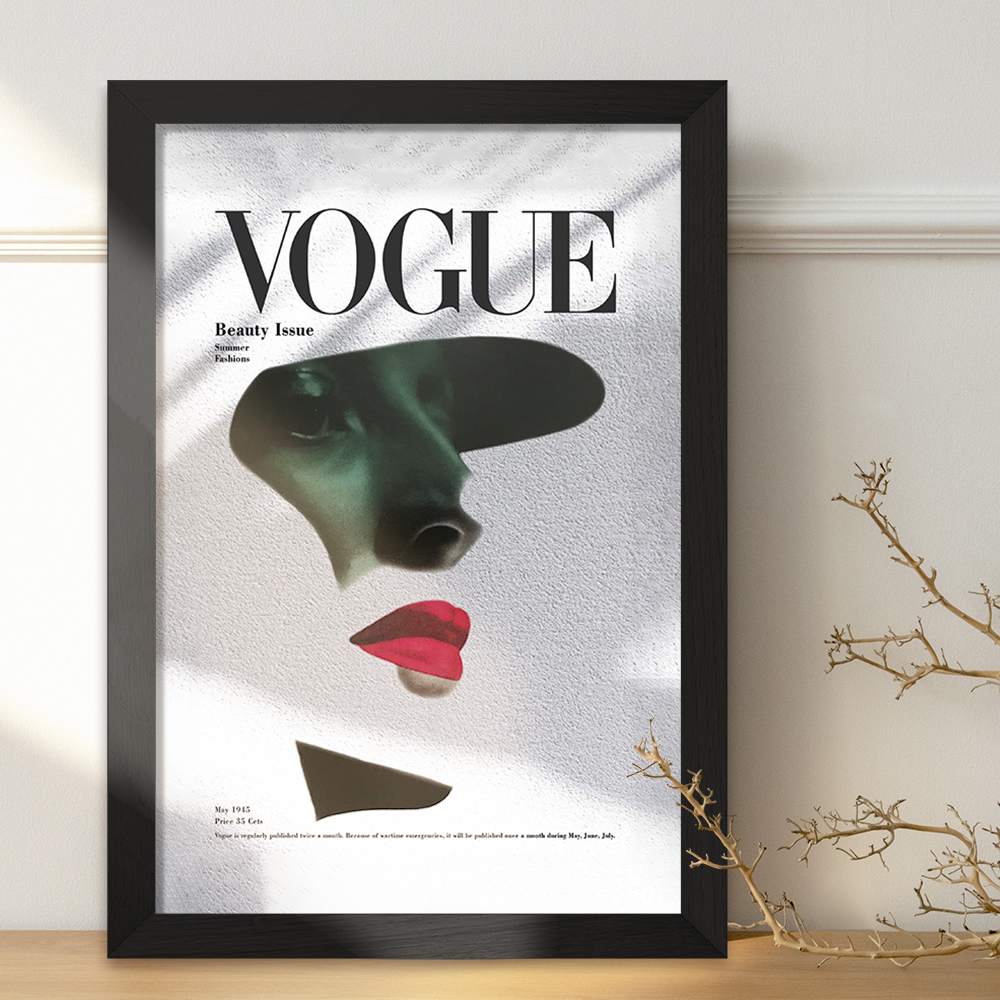 تابلو یا قاب عکس مجله وگ (Vogue) خندالو در ابعاد مختلف با استفاده از بهترین برند پروفیل پی وی سی دو سانتی متری بسیار مرغوب، تولید شده اند و در مونتاژ و نصب آنها نهایت دقت در قرارگیری هر چه دقیق تر لبه ها به یکدیگر صورت گرفته است. همچنین در پشت قاب ها گیره ای برای اتصال راحت به دیوار تعبیه شده است.