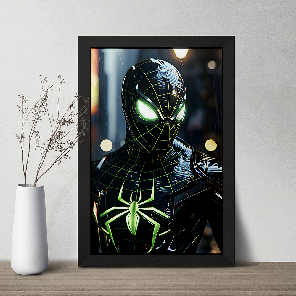 تابلو یا قاب عکس مرد عنکبوتی (Spider Man) خندالو در ابعاد مختلف با استفاده از بهترین برند پروفیل پی وی سی دو سانتی متری بسیار مرغوب، تولید شده اند و در مونتاژ و نصب آنها نهایت دقت در قرارگیری هر چه دقیق تر لبه ها به یکدیگر صورت گرفته است. همچنین در پشت قاب ها گیره ای برای اتصال راحت به دیوار تعبیه شده است.
