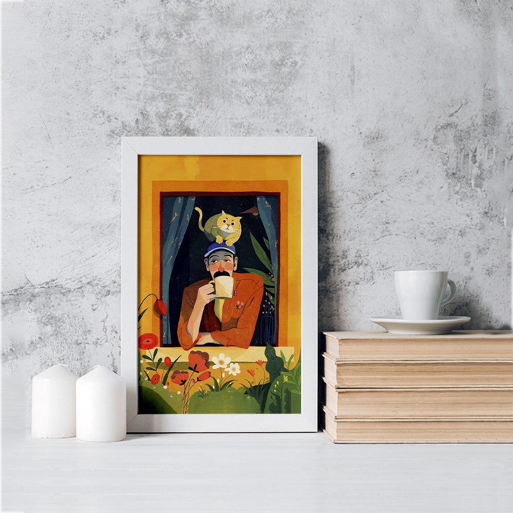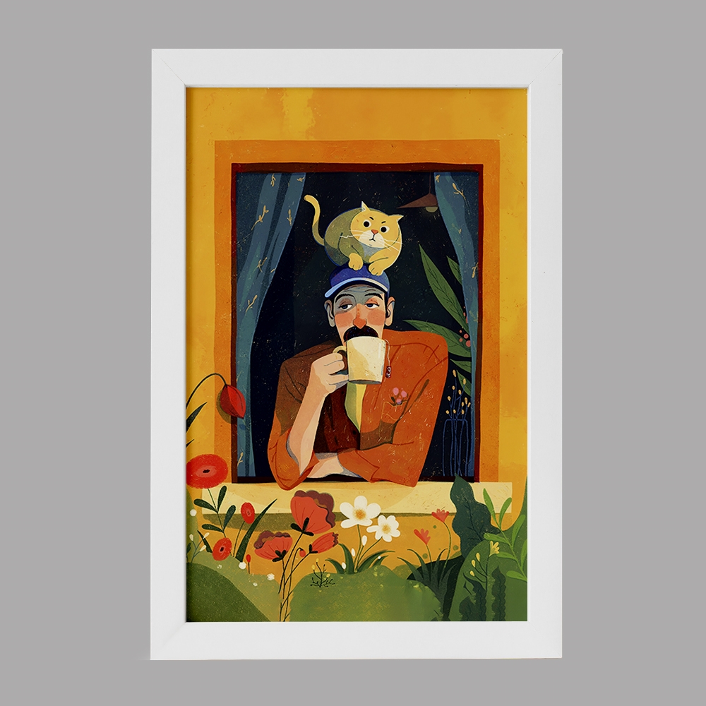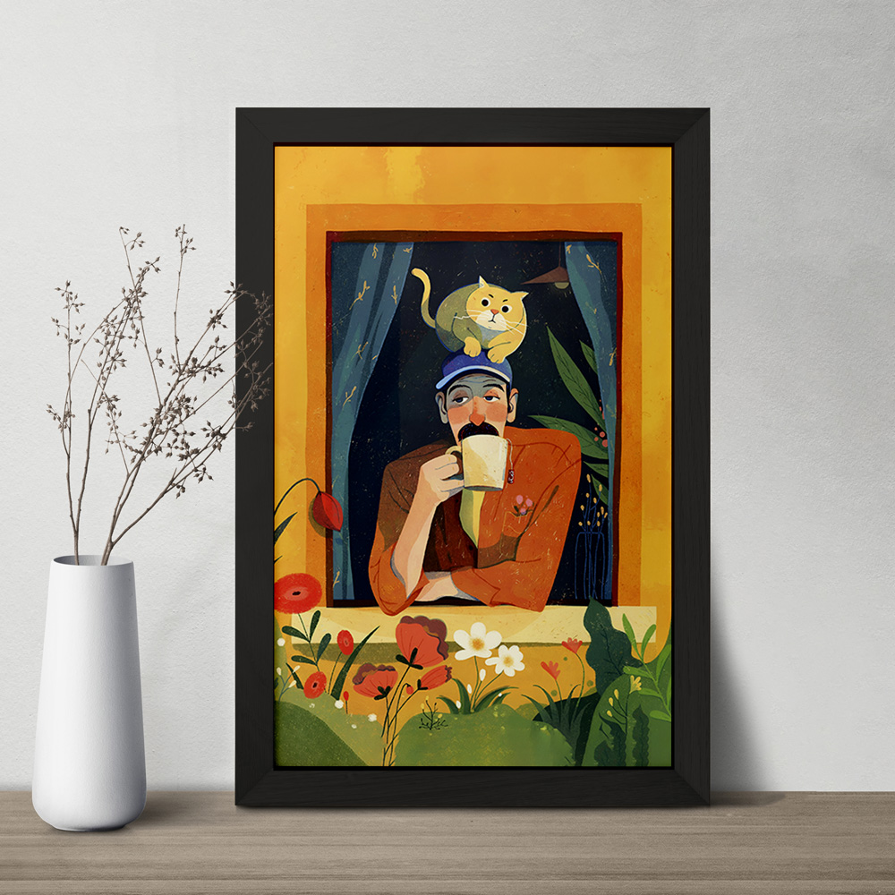 تابلو مرد و گربه