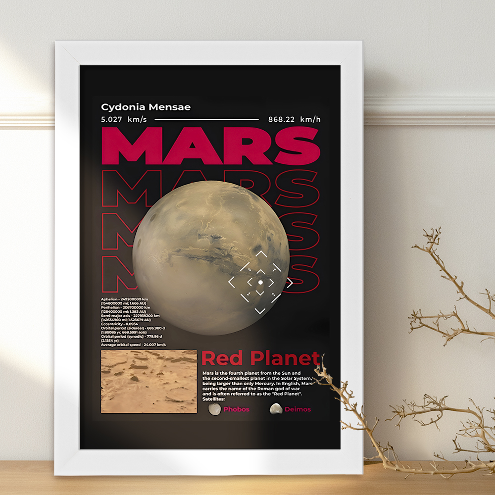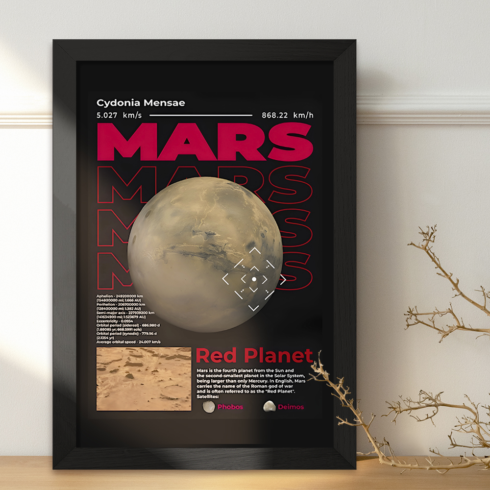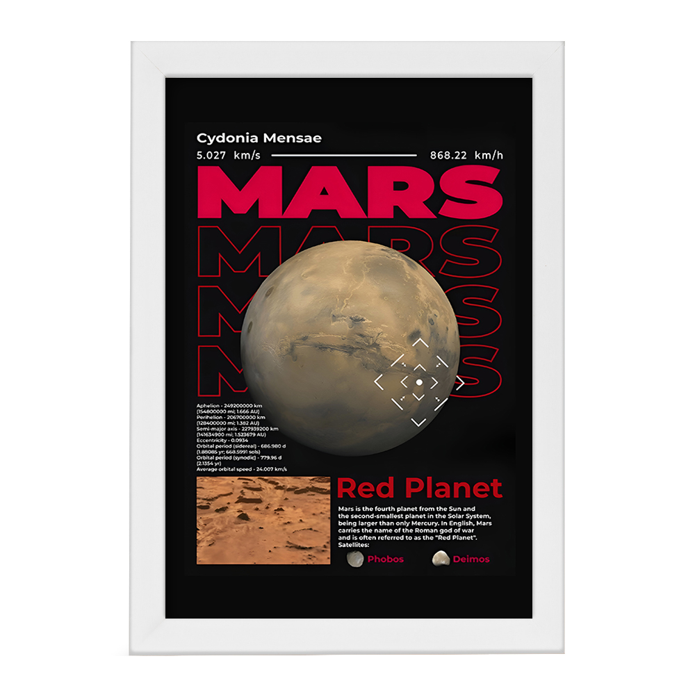 تابلو یا قاب عکس مریخ (Mars) خندالو در ابعاد مختلف با استفاده از بهترین برند پروفیل پی وی سی دو سانتی متری بسیار مرغوب، تولید شده اند و در مونتاژ و نصب آنها نهایت دقت در قرارگیری هر چه دقیق تر لبه ها به یکدیگر صورت گرفته است. همچنین در پشت قاب ها گیره ای برای اتصال راحت به دیوار تعبیه شده است. چاپ طرح تابلوی مریخ (Mars) با بالاترین کیفیت بوسیله چاپگرهای دیجیتال شش رنگ و کاغذ با کیفیت عکاسی انجام شده و بر روی آن شیشه ای با کیفیت و شفاف در سطح قاب قرار گرفته که از کاغذ عکس محافظت میکند. بسته بندی تابلوها جعبه های مقاوم و محکمی بوده که علاوه بر محافظتی که از بدنه قاب می کند، ظاهر جذابی دارد و تابلوی مریخ (Mars) را بدل به محصولی مناسب هدیه کرده است. تابلوهای خندالو با تنوع طرحی بسیار بالا شامل تابلو های دکوراتیو قابل استفاده در اتاق کودک، محل کار و منازل می باشد که سلیقه هر مخاطبی را پوشش می دهد، ضمن اینکه امکان تعویض عکس موجود در قاب وجود داشته و می توان عکس های خانوادگی و … را نیز در آن قرار داد.