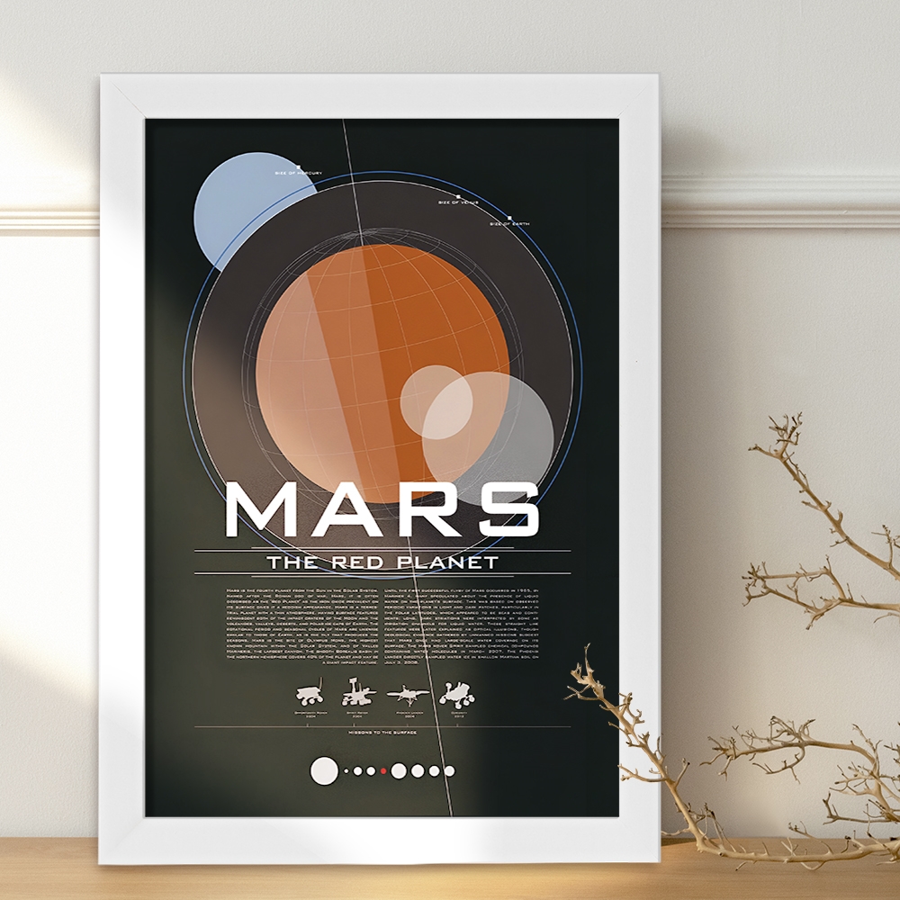 تابلو یا قاب عکس مریخ (Mars) خندالو در ابعاد مختلف با استفاده از بهترین برند پروفیل پی وی سی دو سانتی متری بسیار مرغوب، تولید شده اند و در مونتاژ و نصب آنها نهایت دقت در قرارگیری هر چه دقیق تر لبه ها به یکدیگر صورت گرفته است. همچنین در پشت قاب ها گیره ای برای اتصال راحت به دیوار تعبیه شده است. چاپ طرح تابلوی مریخ (Mars) با بالاترین کیفیت بوسیله چاپگرهای دیجیتال شش رنگ و کاغذ با کیفیت عکاسی انجام شده و بر روی آن شیشه ای با کیفیت و شفاف در سطح قاب قرار گرفته که از کاغذ عکس محافظت میکند. بسته بندی تابلوها جعبه های مقاوم و محکمی بوده که علاوه بر محافظتی که از بدنه قاب می کند، ظاهر جذابی دارد و تابلوی مریخ (Mars) را بدل به محصولی مناسب هدیه کرده است. تابلوهای خندالو با تنوع طرحی بسیار بالا شامل تابلو های دکوراتیو قابل استفاده در اتاق کودک، محل کار و منازل می باشد که سلیقه هر مخاطبی را پوشش می دهد، ضمن اینکه امکان تعویض عکس موجود در قاب وجود داشته و می توان عکس های خانوادگی و … را نیز در آن قرار داد.