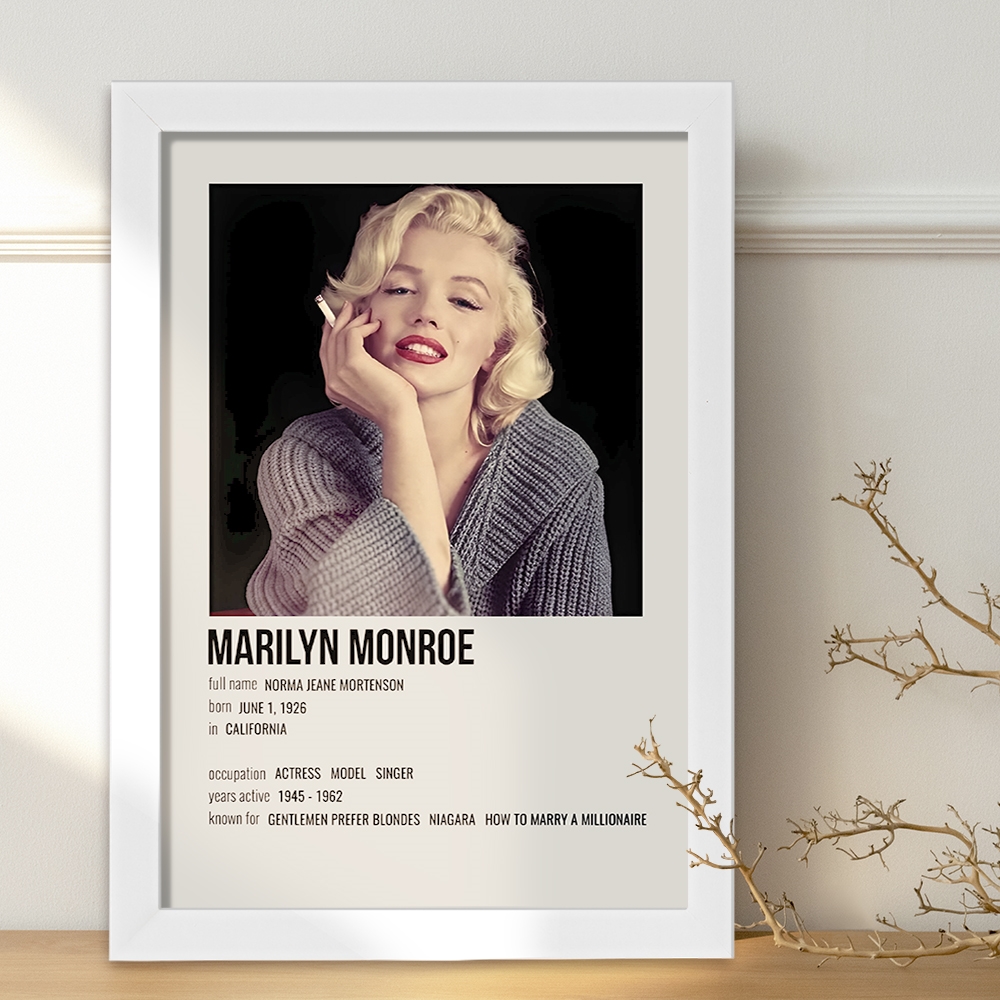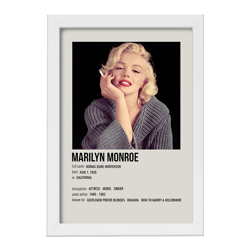 تابلو یا قاب عکس مریلین مونرو (Marilyn Monroe) خندالو در ابعاد مختلف با استفاده از بهترین برند پروفیل پی وی سی دو سانتی متری بسیار مرغوب، تولید شده اند و در مونتاژ و نصب آنها نهایت دقت در قرارگیری هر چه دقیق تر لبه ها به یکدیگر صورت گرفته است. همچنین در پشت قاب ها گیره ای برای اتصال راحت به دیوار تعبیه شده است. چاپ طرح تابلوی مریلین مونرو (Marilyn Monroe) با بالاترین کیفیت بوسیله چاپگرهای دیجیتال شش رنگ و کاغذ با کیفیت عکاسی انجام شده و بر روی آن شیشه ای با کیفیت و شفاف در سطح قاب قرار گرفته که از کاغذ عکس محافظت میکند. بسته بندی تابلوها جعبه های مقاوم و محکمی بوده که علاوه بر محافظتی که از بدنه قاب می کند، ظاهر جذابی دارد و تابلوی مریلین مونرو (Marilyn Monroe) را بدل به محصولی مناسب هدیه کرده است. تابلوهای خندالو با تنوع طرحی بسیار بالا شامل تابلو های دکوراتیو قابل استفاده در اتاق کودک، محل کار و منازل می باشد که سلیقه هر مخاطبی را پوشش می دهد، ضمن اینکه امکان تعویض عکس موجود در قاب وجود داشته و می توان عکس های خانوادگی و … را نیز در آن قرار داد.