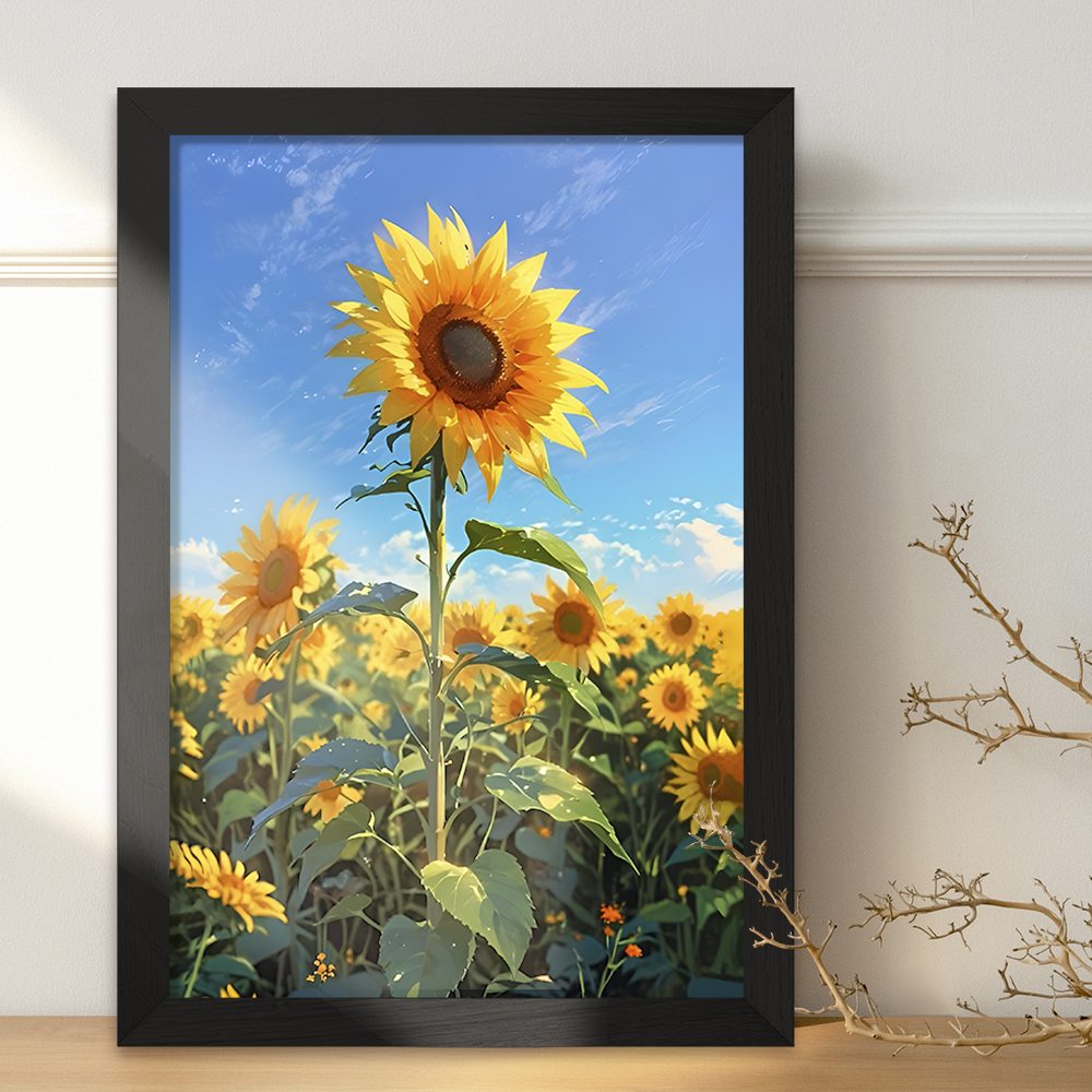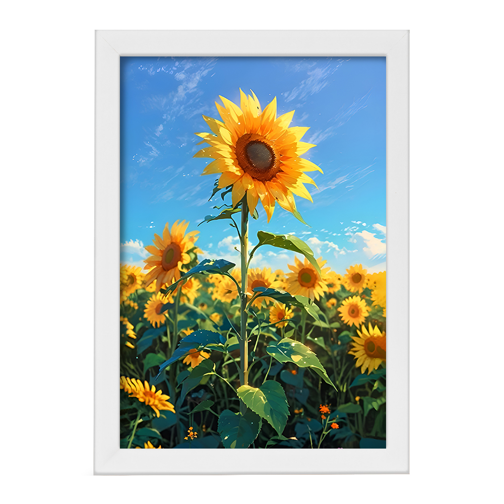 تابلو یا قاب عکس مزرعه گل آفتابگردان خندالو در ابعاد مختلف با استفاده از بهترین برند پروفیل پی وی سی دو سانتی متری بسیار مرغوب، تولید شده اند و در مونتاژ و نصب آنها نهایت دقت در قرارگیری هر چه دقیق تر لبه ها به یکدیگر صورت گرفته است. همچنین در پشت قاب ها گیره ای برای اتصال راحت به دیوار تعبیه شده است. چاپ طرح تابلوی مزرعه گل آفتابگردان با بالاترین کیفیت بوسیله چاپگرهای دیجیتال شش رنگ و کاغذ با کیفیت عکاسی انجام شده و بر روی آن شیشه ای با کیفیت و شفاف در سطح قاب قرار گرفته که از کاغذ عکس محافظت میکند. بسته بندی تابلوها جعبه های مقاوم و محکمی بوده که علاوه بر محافظتی که از بدنه قاب می کند، ظاهر جذابی دارد و تابلوی مزرعه گل آفتابگردان را بدل به محصولی مناسب هدیه کرده است. تابلوهای خندالو با تنوع طرحی بسیار بالا شامل تابلو های دکوراتیو قابل استفاده در اتاق کودک، محل کار و منازل می باشد که سلیقه هر مخاطبی را پوشش می دهد، ضمن اینکه امکان تعویض عکس موجود در قاب وجود داشته و می توان عکس های خانوادگی و … را نیز در آن قرار داد.