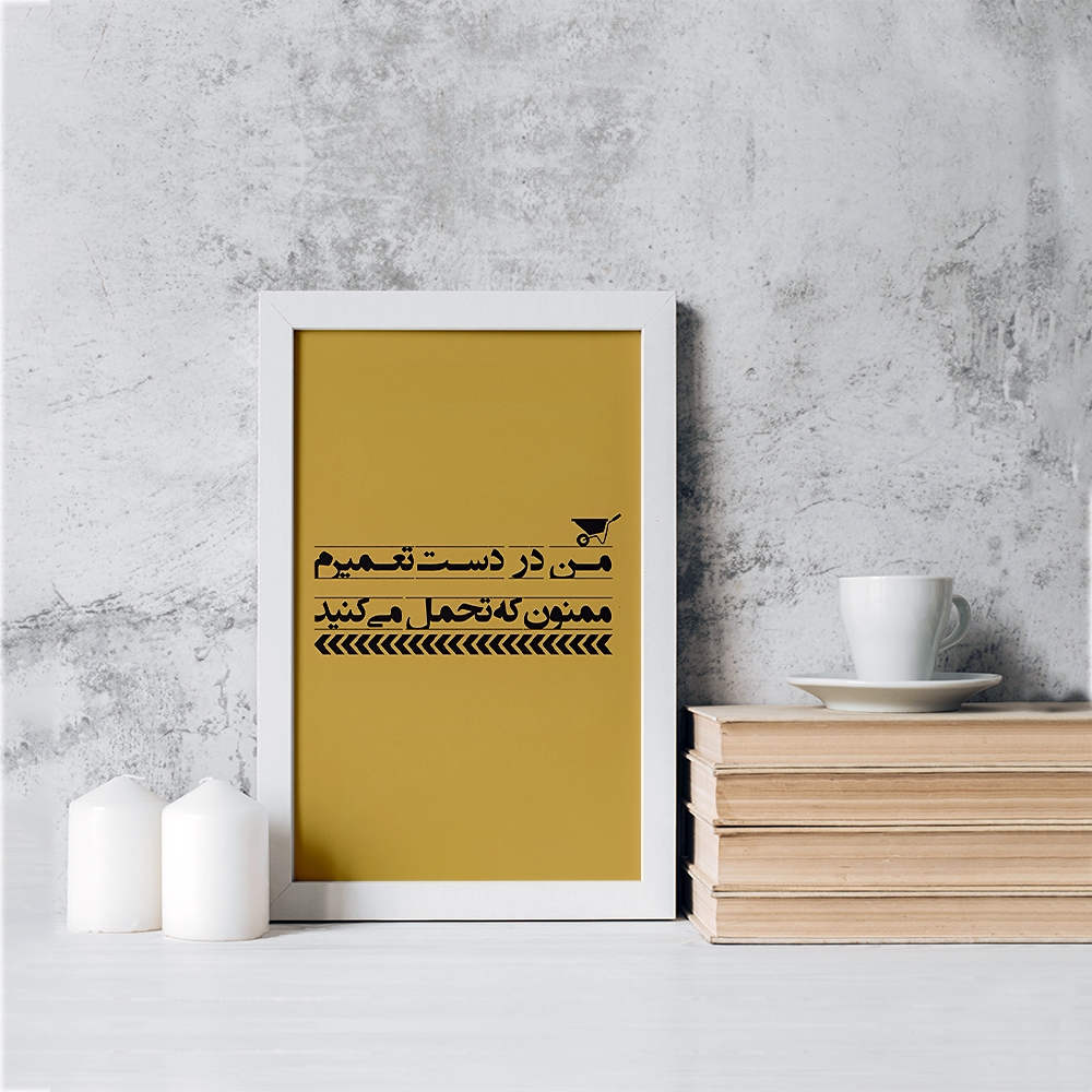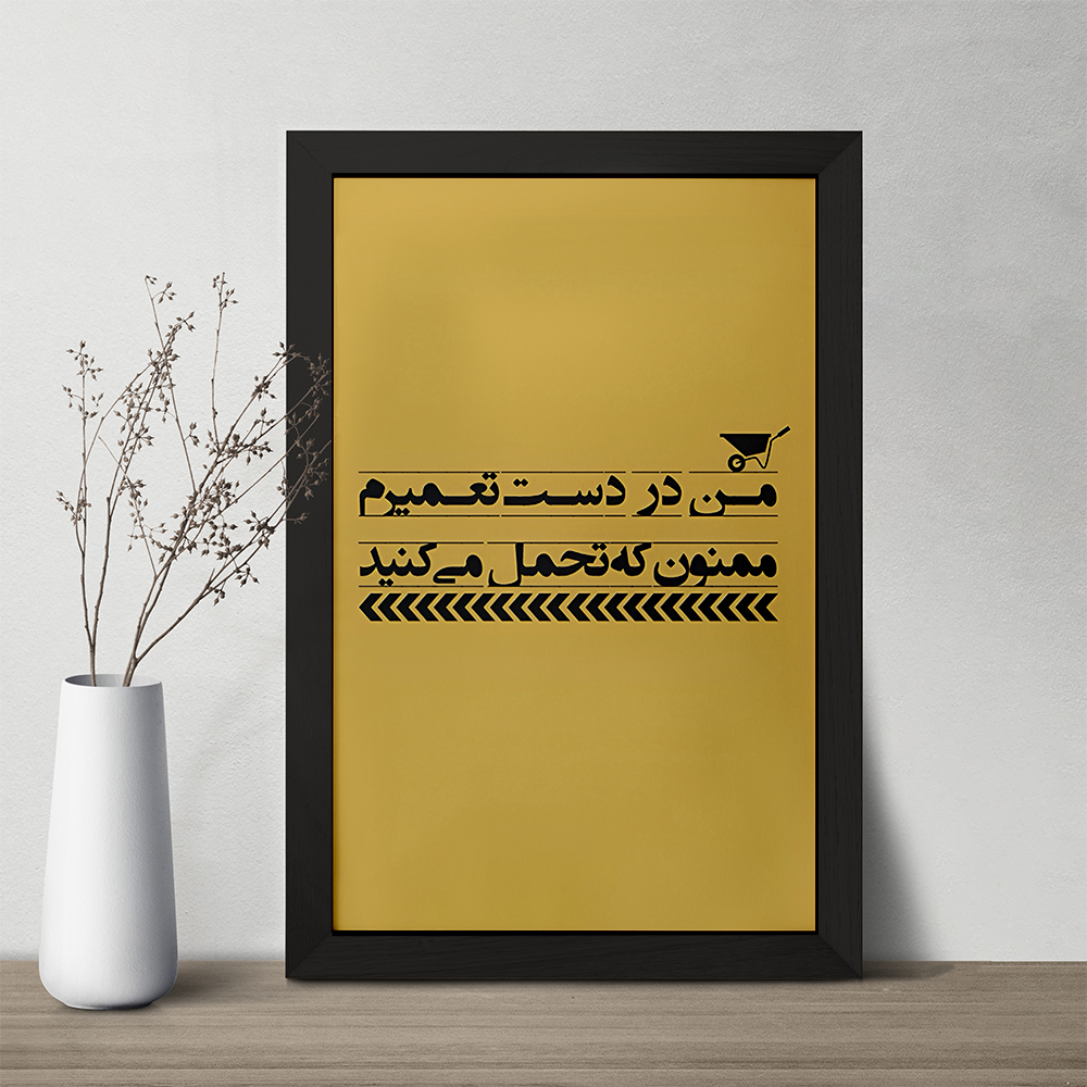 تابلو یا قاب عکس من در دست تعمیرم ممنون که تحمل می کنید خندالو در ابعاد مختلف با استفاده از بهترین برند پروفیل پی وی سی دو سانتی متری بسیار مرغوب، تولید شده اند و در مونتاژ و نصب آنها نهایت دقت در قرارگیری هر چه دقیق تر لبه ها به یکدیگر صورت گرفته است. همچنین در پشت قاب ها گیره ای برای اتصال راحت به دیوار تعبیه شده است. چاپ طرح تابلوی من در دست تعمیرم ممنون که تحمل می کنید با بالاترین کیفیت بوسیله چاپگرهای دیجیتال شش رنگ و کاغذ با کیفیت عکاسی انجام شده و بر روی آن شیشه ای با کیفیت و شفاف در سطح قاب قرار گرفته که از کاغذ عکس محافظت میکند. بسته بندی تابلوها جعبه های مقاوم و محکمی بوده که علاوه بر محافظتی که از بدنه قاب می کند، ظاهر جذابی دارد و تابلوی من در دست تعمیرم ممنون که تحمل می کنید را بدل به محصولی مناسب هدیه کرده است. تابلوهای خندالو با تنوع طرحی بسیار بالا شامل تابلو های دکوراتیو قابل استفاده در اتاق کودک، محل کار و منازل می باشد که سلیقه هر مخاطبی را پوشش می دهد، ضمن اینکه امکان تعویض عکس موجود در قاب وجود داشته و می توان عکس های خانوادگی و … را نیز در آن قرار داد.