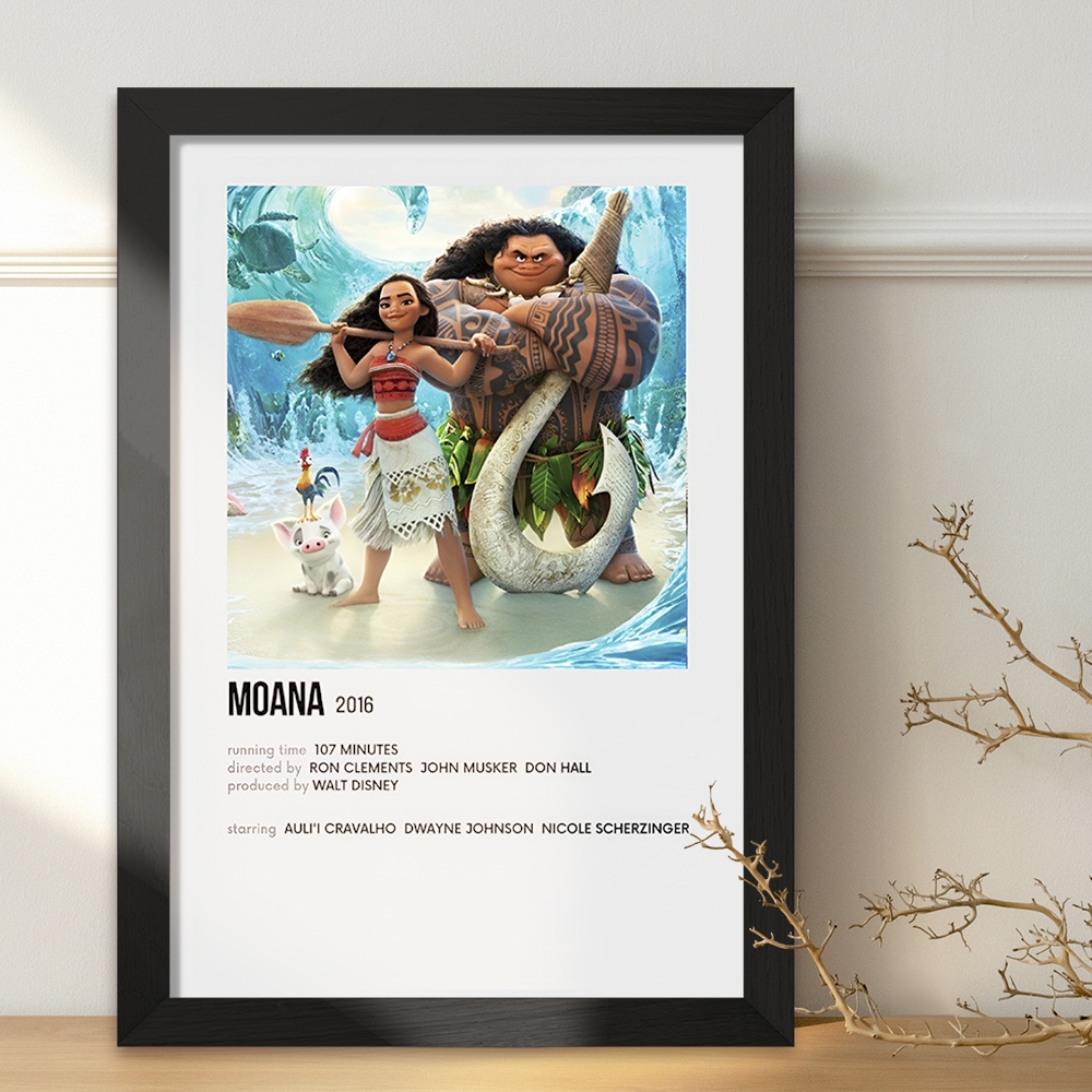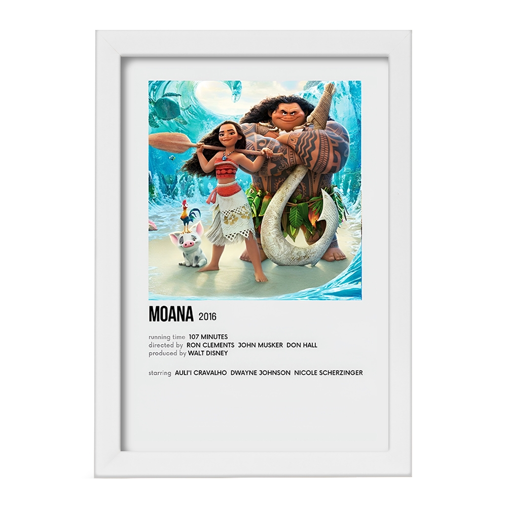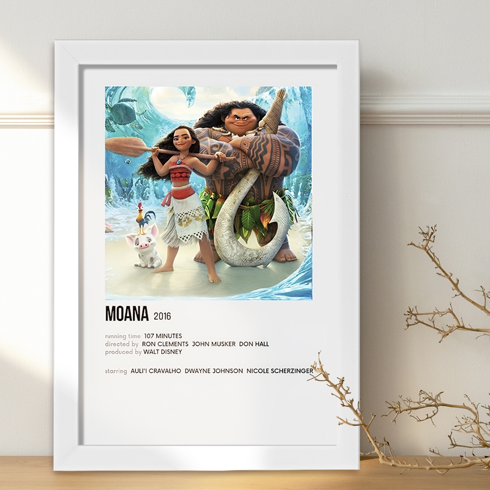 تابلو یا قاب عکس موآنا (Moana) خندالو در ابعاد مختلف با استفاده از بهترین برند پروفیل پی وی سی دو سانتی متری بسیار مرغوب، تولید شده اند و در مونتاژ و نصب آنها نهایت دقت در قرارگیری هر چه دقیق تر لبه ها به یکدیگر صورت گرفته است. همچنین در پشت قاب ها گیره ای برای اتصال راحت به دیوار تعبیه شده است. چاپ طرح تابلوی موآنا (Moana) با بالاترین کیفیت بوسیله چاپگرهای دیجیتال شش رنگ و کاغذ با کیفیت عکاسی انجام شده و بر روی آن شیشه ای با کیفیت و شفاف در سطح قاب قرار گرفته که از کاغذ عکس محافظت میکند. بسته بندی تابلوها جعبه های مقاوم و محکمی بوده که علاوه بر محافظتی که از بدنه قاب می کند، ظاهر جذابی دارد و تابلوی موآنا (Moana) را بدل به محصولی مناسب هدیه کرده است. تابلوهای خندالو با تنوع طرحی بسیار بالا شامل تابلو های دکوراتیو قابل استفاده در اتاق کودک، محل کار و منازل می باشد که سلیقه هر مخاطبی را پوشش می دهد، ضمن اینکه امکان تعویض عکس موجود در قاب وجود داشته و می توان عکس های خانوادگی و … را نیز در آن قرار داد.