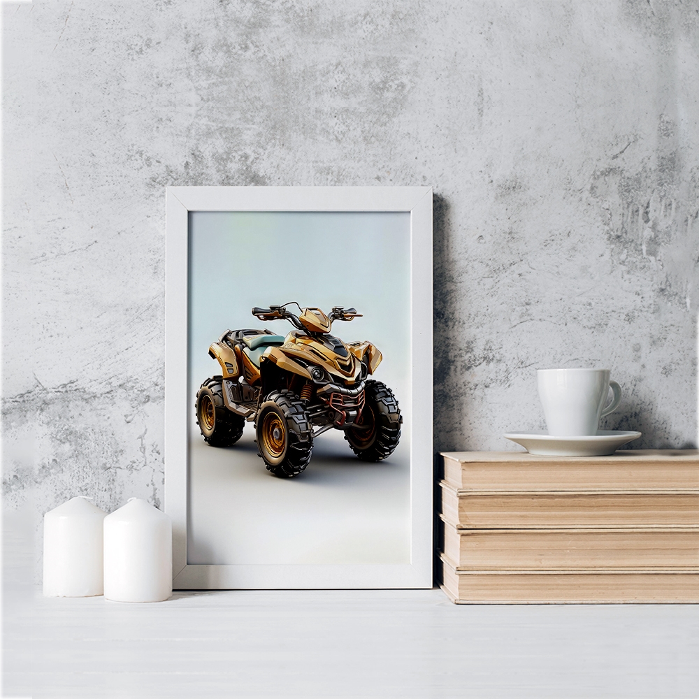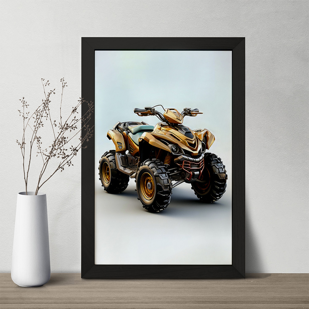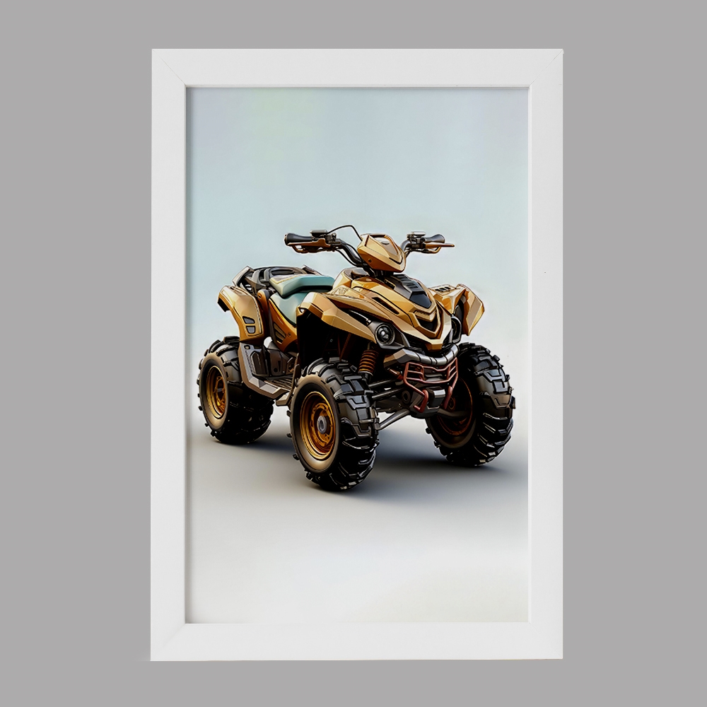 تابلو یا قاب عکس موتور چهار چرخ خندالو در ابعاد مختلف با استفاده از بهترین برند پروفیل پی وی سی دو سانتی متری بسیار مرغوب، تولید شده اند و در مونتاژ و نصب آنها نهایت دقت در قرارگیری هر چه دقیق تر لبه ها به یکدیگر صورت گرفته است. همچنین در پشت قاب ها گیره ای برای اتصال راحت به دیوار تعبیه شده است.