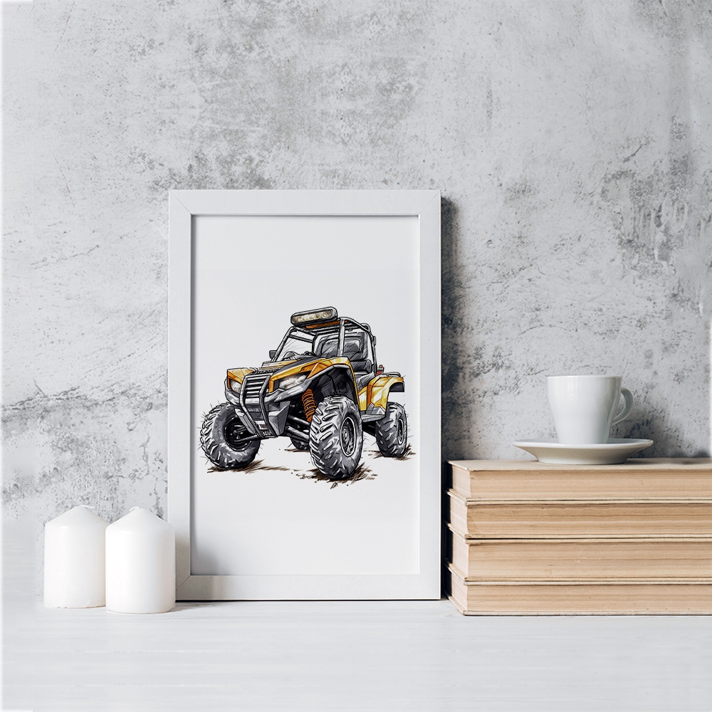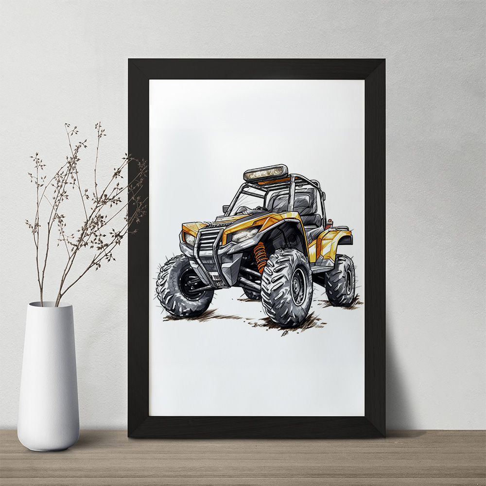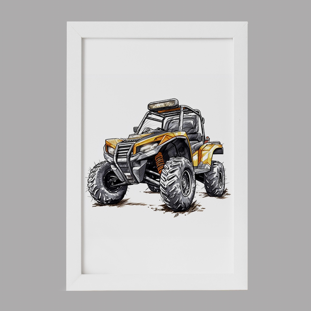 تابلو یا قاب عکس موتور چهار چرخ خندالو در ابعاد مختلف با استفاده از بهترین برند پروفیل پی وی سی دو سانتی متری بسیار مرغوب، تولید شده اند و در مونتاژ و نصب آنها نهایت دقت در قرارگیری هر چه دقیق تر لبه ها به یکدیگر صورت گرفته است. همچنین در پشت قاب ها گیره ای برای اتصال راحت به دیوار تعبیه شده است.