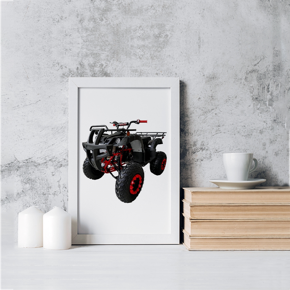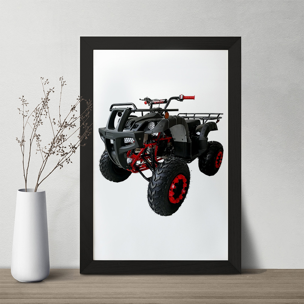 تابلو یا قاب عکس موتور چهار چرخ خندالو در ابعاد مختلف با استفاده از بهترین برند پروفیل پی وی سی دو سانتی متری بسیار مرغوب، تولید شده اند و در مونتاژ و نصب آنها نهایت دقت در قرارگیری هر چه دقیق تر لبه ها به یکدیگر صورت گرفته است. همچنین در پشت قاب ها گیره ای برای اتصال راحت به دیوار تعبیه شده است.
