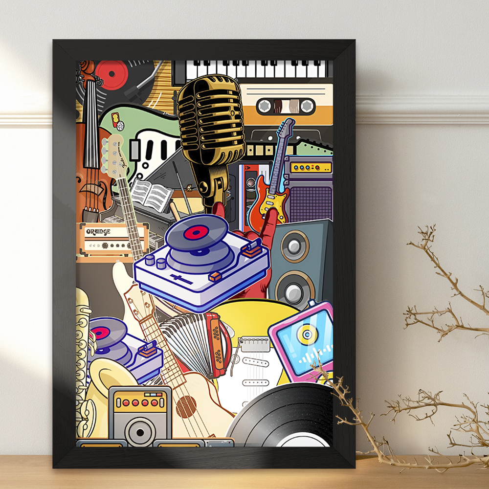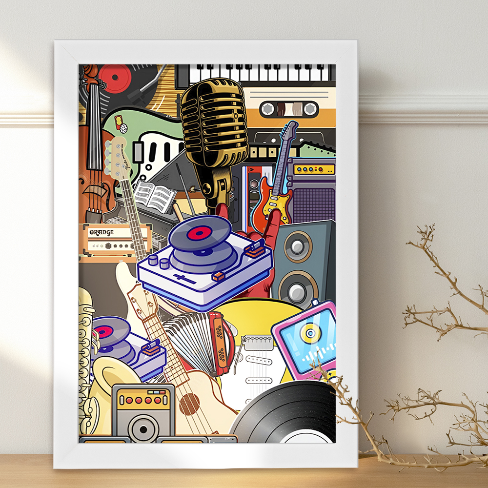 تابلو یا قاب عکس موزیک خندالو در ابعاد مختلف با استفاده از بهترین برند پروفیل پی وی سی دو سانتی متری بسیار مرغوب، تولید شده اند و در مونتاژ و نصب آنها نهایت دقت در قرارگیری هر چه دقیق تر لبه ها به یکدیگر صورت گرفته است. همچنین در پشت قاب ها گیره ای برای اتصال راحت به دیوار تعبیه شده است. چاپ طرح تابلوی موزیک با بالاترین کیفیت بوسیله چاپگرهای دیجیتال شش رنگ و کاغذ با کیفیت عکاسی انجام شده و بر روی آن شیشه ای با کیفیت و شفاف در سطح قاب قرار گرفته که از کاغذ عکس محافظت میکند. بسته بندی تابلوها جعبه های مقاوم و محکمی بوده که علاوه بر محافظتی که از بدنه قاب می کند، ظاهر جذابی دارد و تابلوی موزیک را بدل به محصولی مناسب هدیه کرده است. تابلوهای خندالو با تنوع طرحی بسیار بالا شامل تابلو های دکوراتیو قابل استفاده در اتاق کودک، محل کار و منازل می باشد که سلیقه هر مخاطبی را پوشش می دهد، ضمن اینکه امکان تعویض عکس موجود در قاب وجود داشته و می توان عکس های خانوادگی و … را نیز در آن قرار داد.