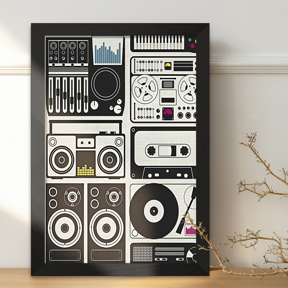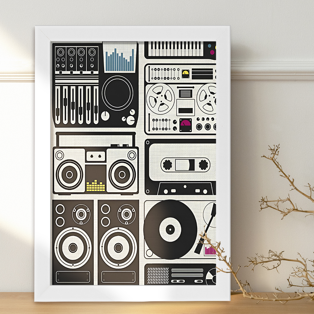 تابلو یا قاب عکس موسیقی خندالو در ابعاد مختلف با استفاده از بهترین برند پروفیل پی وی سی دو سانتی متری بسیار مرغوب، تولید شده اند و در مونتاژ و نصب آنها نهایت دقت در قرارگیری هر چه دقیق تر لبه ها به یکدیگر صورت گرفته است. همچنین در پشت قاب ها گیره ای برای اتصال راحت به دیوار تعبیه شده است. چاپ طرح تابلوی موسیقی با بالاترین کیفیت بوسیله چاپگرهای دیجیتال شش رنگ و کاغذ با کیفیت عکاسی انجام شده و بر روی آن شیشه ای با کیفیت و شفاف در سطح قاب قرار گرفته که از کاغذ عکس محافظت میکند. بسته بندی تابلوها جعبه های مقاوم و محکمی بوده که علاوه بر محافظتی که از بدنه قاب می کند، ظاهر جذابی دارد و تابلوی موسیقی را بدل به محصولی مناسب هدیه کرده است. تابلوهای خندالو با تنوع طرحی بسیار بالا شامل تابلو های دکوراتیو قابل استفاده در اتاق کودک، محل کار و منازل می باشد که سلیقه هر مخاطبی را پوشش می دهد، ضمن اینکه امکان تعویض عکس موجود در قاب وجود داشته و می توان عکس های خانوادگی و … را نیز در آن قرار داد.