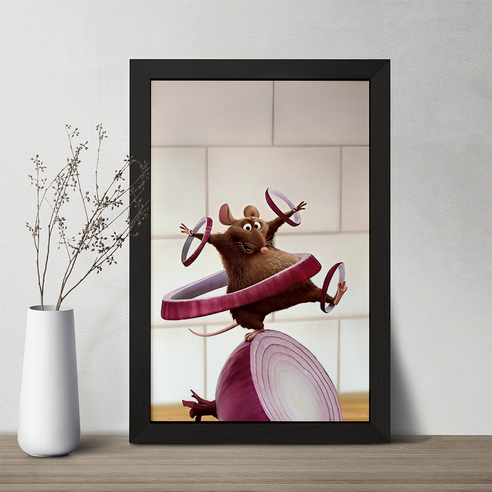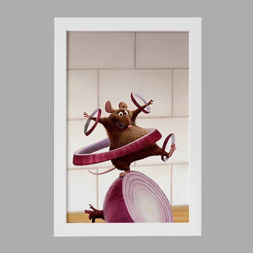 تابلو یا قاب عکس موش سرآشپز (Ratatouille) خندالو در ابعاد مختلف با استفاده از بهترین برند پروفیل پی وی سی دو سانتی متری بسیار مرغوب، تولید شده اند و در مونتاژ و نصب آنها نهایت دقت در قرارگیری هر چه دقیق تر لبه ها به یکدیگر صورت گرفته است. همچنین در پشت قاب ها گیره ای برای اتصال راحت به دیوار تعبیه شده است.