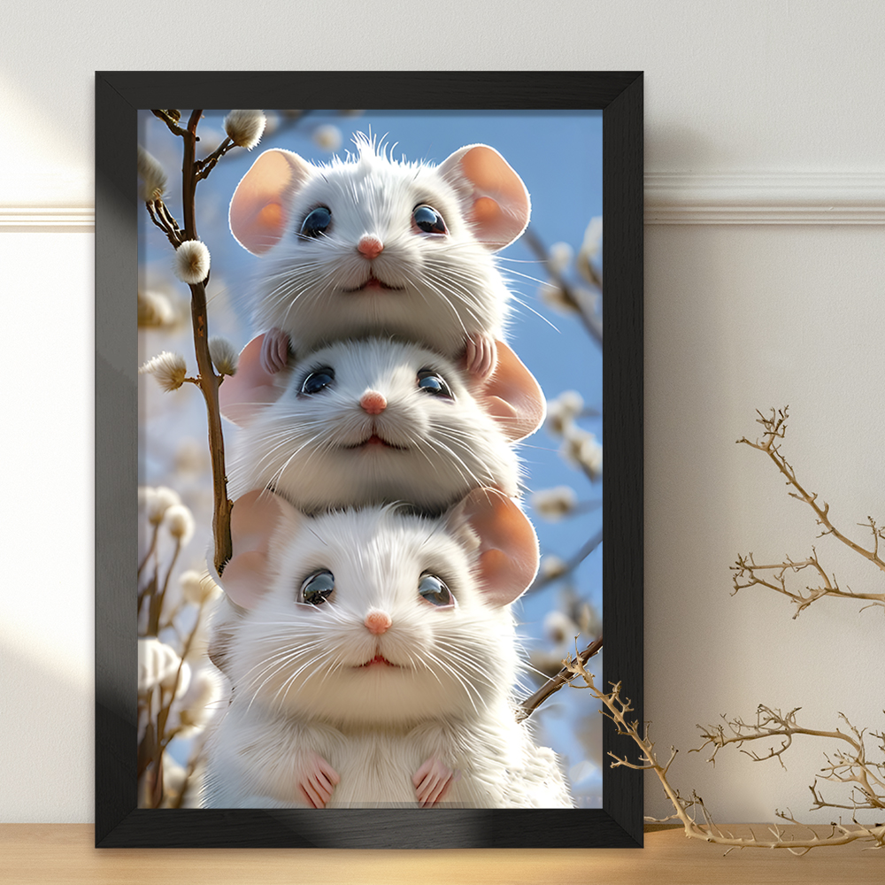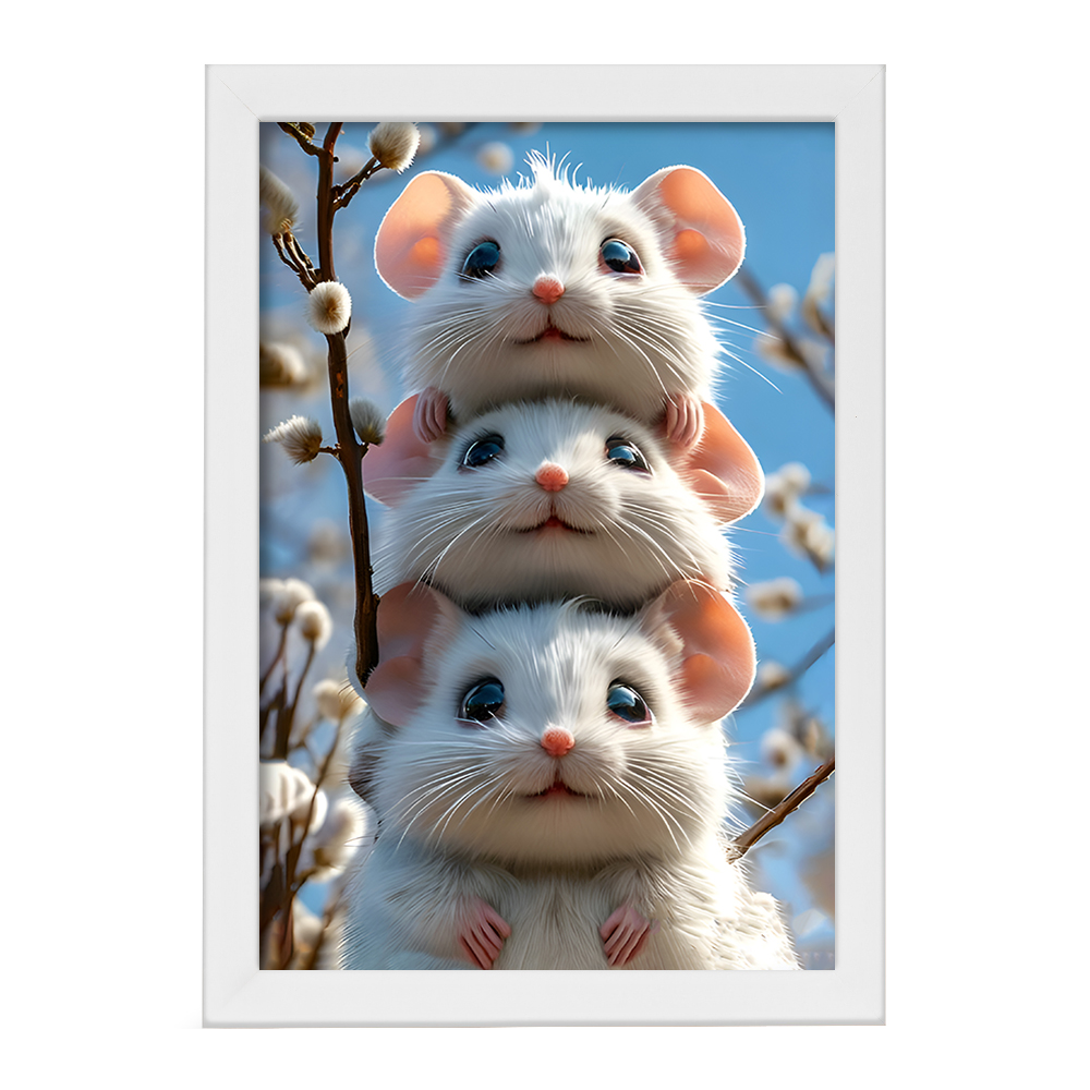 تابلو یا قاب عکس موش های بازیگوش خندالو در ابعاد مختلف با استفاده از بهترین برند پروفیل پی وی سی دو سانتی متری بسیار مرغوب، تولید شده اند و در مونتاژ و نصب آنها نهایت دقت در قرارگیری هر چه دقیق تر لبه ها به یکدیگر صورت گرفته است. همچنین در پشت قاب ها گیره ای برای اتصال راحت به دیوار تعبیه شده است.
