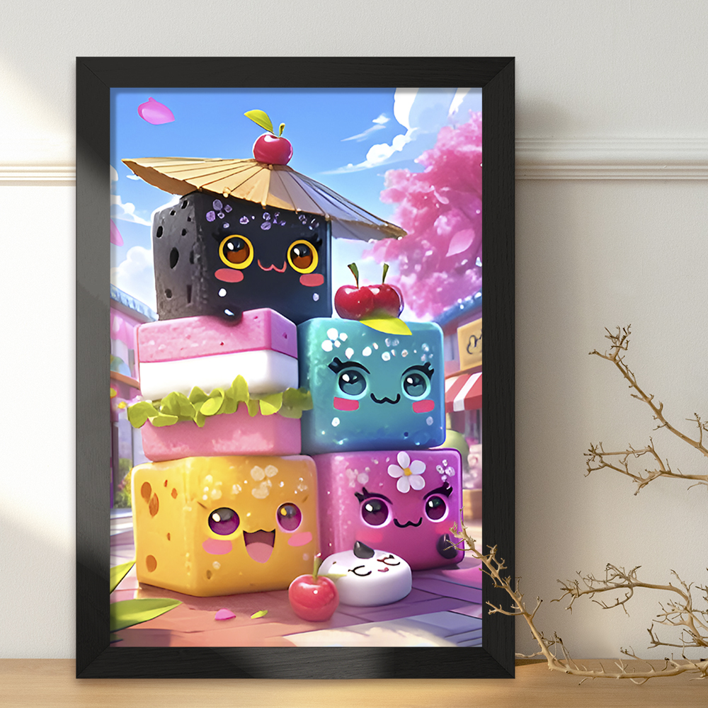 تابلو یا قاب عکس موچی میوه ای خندالو در ابعاد مختلف با استفاده از بهترین برند پروفیل پی وی سی دو سانتی متری بسیار مرغوب، تولید شده اند و در مونتاژ و نصب آنها نهایت دقت در قرارگیری هر چه دقیق تر لبه ها به یکدیگر صورت گرفته است. همچنین در پشت قاب ها گیره ای برای اتصال راحت به دیوار تعبیه شده است. چاپ طرح تابلوی موچی میوه ای با بالاترین کیفیت بوسیله چاپگرهای دیجیتال شش رنگ و کاغذ با کیفیت عکاسی انجام شده و بر روی آن شیشه ای با کیفیت و شفاف در سطح قاب قرار گرفته که از کاغذ عکس محافظت میکند. بسته بندی تابلوها جعبه های مقاوم و محکمی بوده که علاوه بر محافظتی که از بدنه قاب می کند، ظاهر جذابی دارد و تابلوی موچی میوه ای را بدل به محصولی مناسب هدیه کرده است. تابلوهای خندالو با تنوع طرحی بسیار بالا شامل تابلو های دکوراتیو قابل استفاده در اتاق کودک، محل کار و منازل می باشد که سلیقه هر مخاطبی را پوشش می دهد، ضمن اینکه امکان تعویض عکس موجود در قاب وجود داشته و می توان عکس های خانوادگی و … را نیز در آن قرار داد.