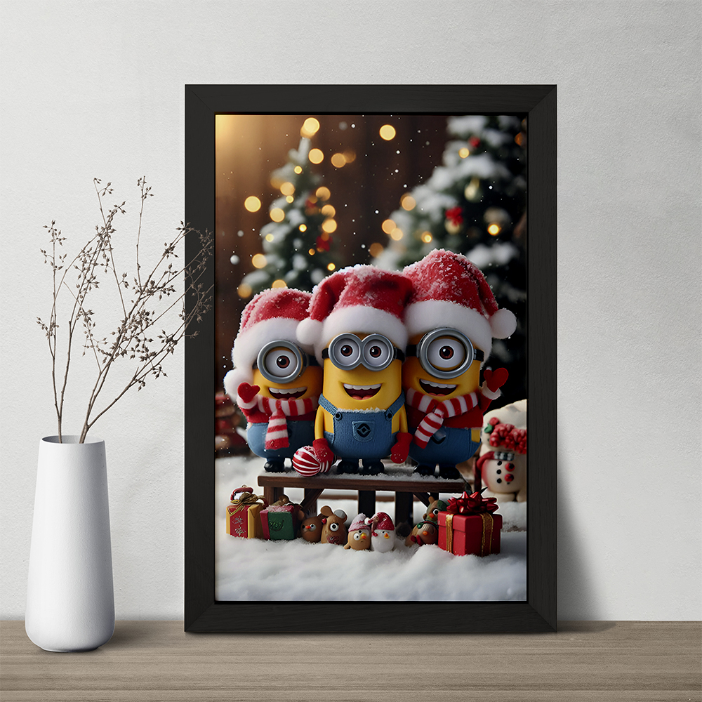 تابلو یا قاب عکس مینیون ها (Minions) خندالو در ابعاد مختلف با استفاده از بهترین برند پروفیل پی وی سی دو سانتی متری بسیار مرغوب، تولید شده اند و در مونتاژ و نصب آنها نهایت دقت در قرارگیری هر چه دقیق تر لبه ها به یکدیگر صورت گرفته است. همچنین در پشت قاب ها گیره ای برای اتصال راحت به دیوار تعبیه شده است.