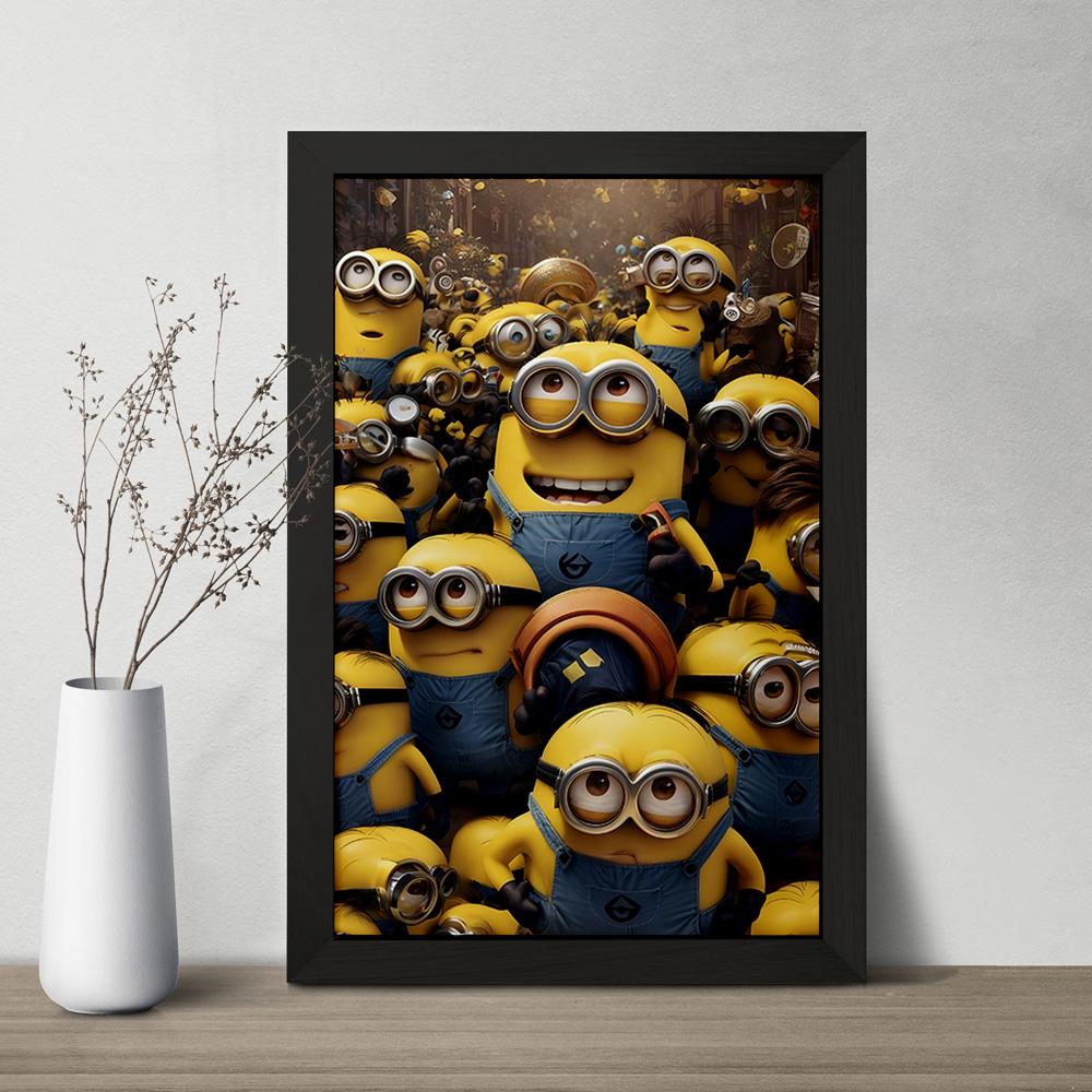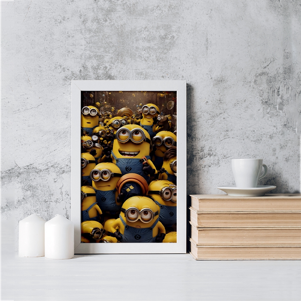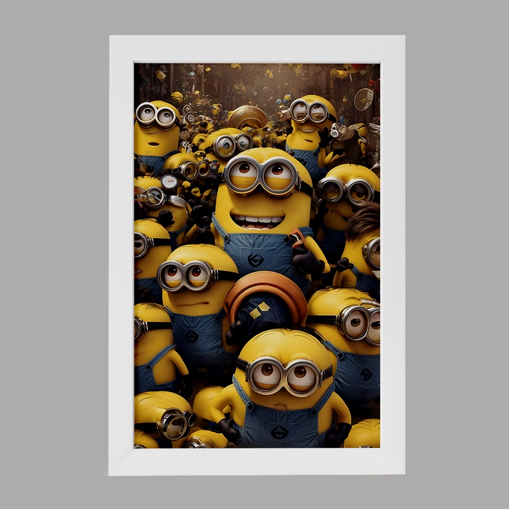 تابلو یا قاب عکس مینیون ها (Minions) خندالو در ابعاد مختلف با استفاده از بهترین برند پروفیل پی وی سی دو سانتی متری بسیار مرغوب، تولید شده اند و در مونتاژ و نصب آنها نهایت دقت در قرارگیری هر چه دقیق تر لبه ها به یکدیگر صورت گرفته است. همچنین در پشت قاب ها گیره ای برای اتصال راحت به دیوار تعبیه شده است.