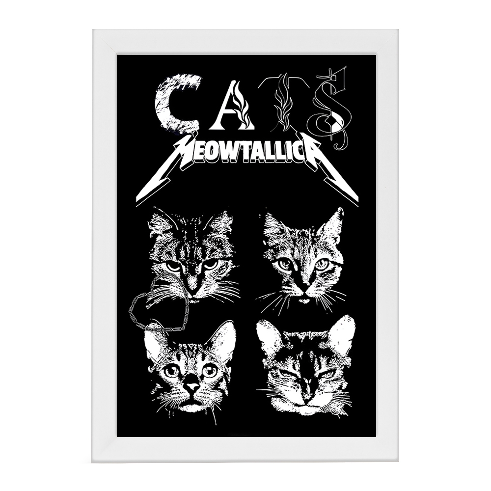 تابلو یا قاب عکس میوتالیکا (Meowtallica) خندالو در ابعاد مختلف با استفاده از بهترین برند پروفیل پی وی سی دو سانتی متری بسیار مرغوب، تولید شده اند و در مونتاژ و نصب آنها نهایت دقت در قرارگیری هر چه دقیق تر لبه ها به یکدیگر صورت گرفته است. همچنین در پشت قاب ها گیره ای برای اتصال راحت به دیوار تعبیه شده است. چاپ طرح تابلوی میوتالیکا (Meowtallica) با بالاترین کیفیت بوسیله چاپگرهای دیجیتال شش رنگ و کاغذ با کیفیت عکاسی انجام شده و بر روی آن شیشه ای با کیفیت و شفاف در سطح قاب قرار گرفته که از کاغذ عکس محافظت میکند. بسته بندی تابلوها جعبه های مقاوم و محکمی بوده که علاوه بر محافظتی که از بدنه قاب می کند، ظاهر جذابی دارد و تابلوی میوتالیکا (Meowtallica) را بدل به محصولی مناسب هدیه کرده است. تابلوهای خندالو با تنوع طرحی بسیار بالا شامل تابلو های دکوراتیو قابل استفاده در اتاق کودک، محل کار و منازل می باشد که سلیقه هر مخاطبی را پوشش می دهد، ضمن اینکه امکان تعویض عکس موجود در قاب وجود داشته و می توان عکس های خانوادگی و … را نیز در آن قرار داد.