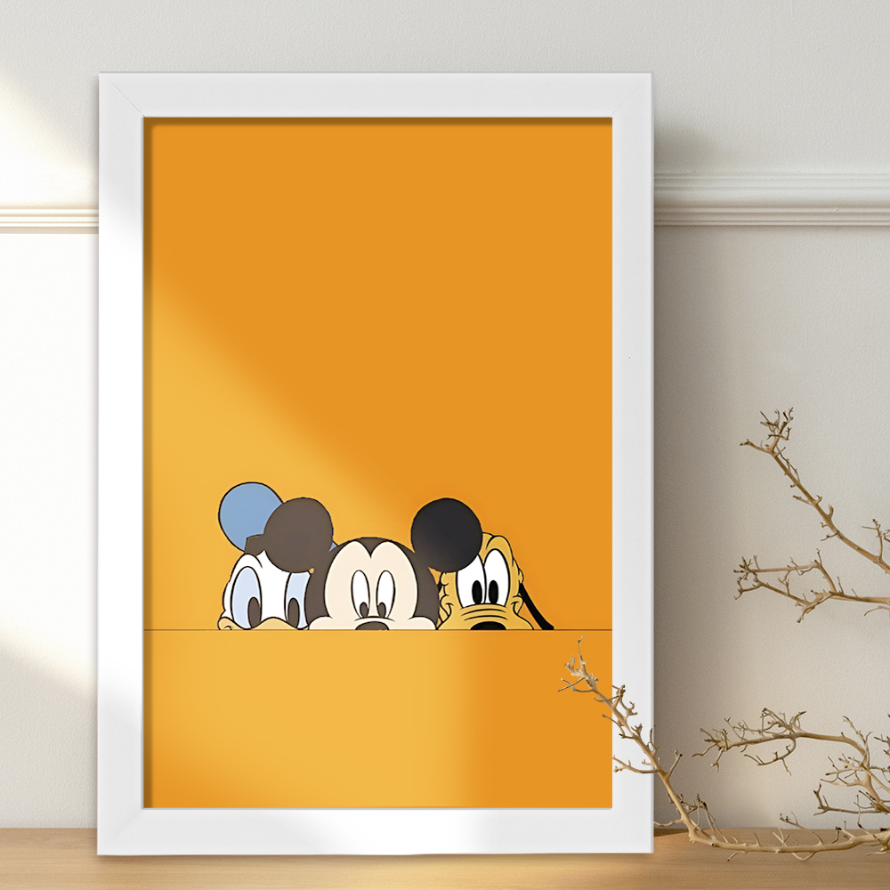 تابلو یا قاب عکس میکی موس خندالو در ابعاد مختلف با استفاده از بهترین برند پروفیل پی وی سی دو سانتی متری بسیار مرغوب، تولید شده اند و در مونتاژ و نصب آنها نهایت دقت در قرارگیری هر چه دقیق تر لبه ها به یکدیگر صورت گرفته است. همچنین در پشت قاب ها گیره ای برای اتصال راحت به دیوار تعبیه شده است.
