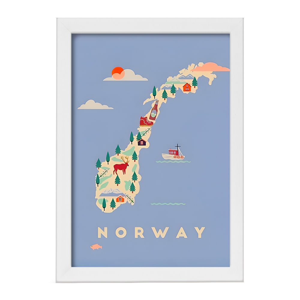 تابلو یا قاب عکس نروژ (Norway) خندالو در ابعاد مختلف با استفاده از بهترین برند پروفیل پی وی سی دو سانتی متری بسیار مرغوب، تولید شده اند و در مونتاژ و نصب آنها نهایت دقت در قرارگیری هر چه دقیق تر لبه ها به یکدیگر صورت گرفته است. همچنین در پشت قاب ها گیره ای برای اتصال راحت به دیوار تعبیه شده است. چاپ طرح تابلوی نروژ (Norway) با بالاترین کیفیت بوسیله چاپگرهای دیجیتال شش رنگ و کاغذ با کیفیت عکاسی انجام شده و بر روی آن شیشه ای با کیفیت و شفاف در سطح قاب قرار گرفته که از کاغذ عکس محافظت میکند. بسته بندی تابلوها جعبه های مقاوم و محکمی بوده که علاوه بر محافظتی که از بدنه قاب می کند، ظاهر جذابی دارد و تابلوی نروژ (Norway) را بدل به محصولی مناسب هدیه کرده است. تابلوهای خندالو با تنوع طرحی بسیار بالا شامل تابلو های دکوراتیو قابل استفاده در اتاق کودک، محل کار و منازل می باشد که سلیقه هر مخاطبی را پوشش می دهد، ضمن اینکه امکان تعویض عکس موجود در قاب وجود داشته و می توان عکس های خانوادگی و … را نیز در آن قرار داد.