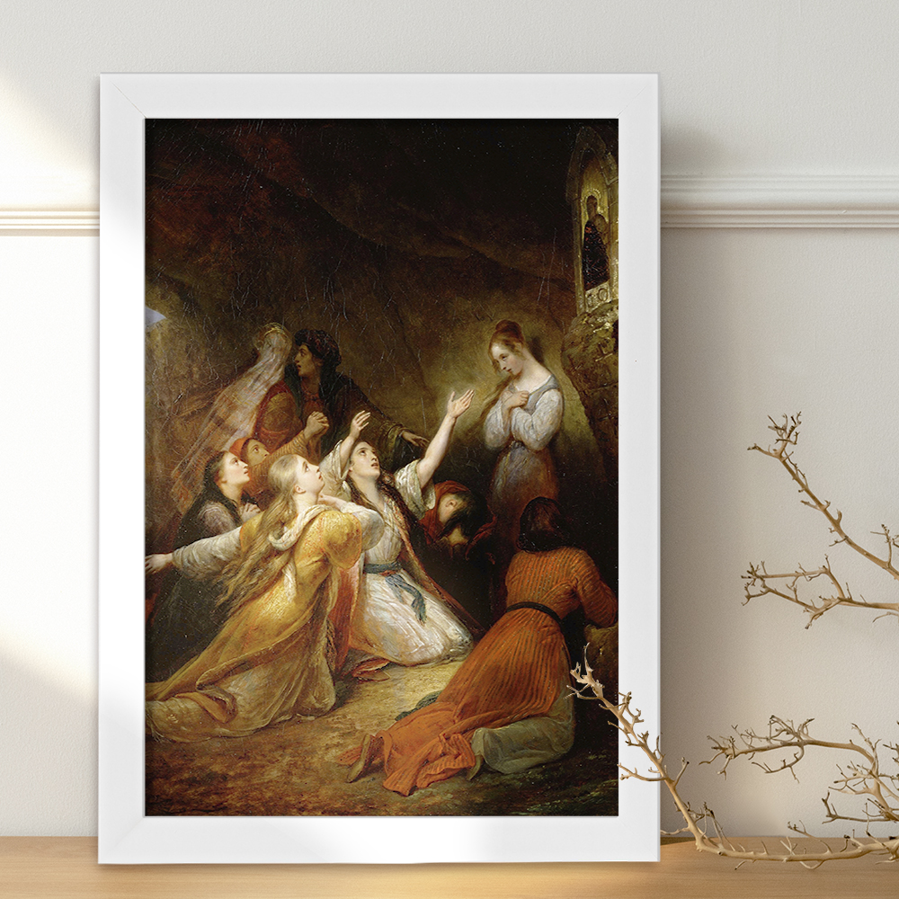 تابلو یا قاب عکس نقاشی التماس زنان یونانی اثر آری شفر خندالو در ابعاد مختلف با استفاده از بهترین برند پروفیل پی وی سی دو سانتی متری بسیار مرغوب، تولید شده اند و در مونتاژ و نصب آنها نهایت دقت در قرارگیری هر چه دقیق تر لبه ها به یکدیگر صورت گرفته است. همچنین در پشت قاب ها گیره ای برای اتصال راحت به دیوار تعبیه شده است. چاپ طرح تابلوی نقاشی التماس زنان یونانی اثر آری شفر با بالاترین کیفیت بوسیله چاپگرهای دیجیتال شش رنگ و کاغذ با کیفیت عکاسی انجام شده و بر روی آن شیشه ای با کیفیت و شفاف در سطح قاب قرار گرفته که از کاغذ عکس محافظت میکند. بسته بندی تابلوها جعبه های مقاوم و محکمی بوده که علاوه بر محافظتی که از بدنه قاب می کند، ظاهر جذابی دارد و تابلوی نقاشی التماس زنان یونانی اثر آری شفر را بدل به محصولی مناسب هدیه کرده است. تابلوهای خندالو با تنوع طرحی بسیار بالا شامل تابلو های دکوراتیو قابل استفاده در اتاق کودک، محل کار و منازل می باشد که سلیقه هر مخاطبی را پوشش می دهد، ضمن اینکه امکان تعویض عکس موجود در قاب وجود داشته و می توان عکس های خانوادگی و … را نیز در آن قرار داد.