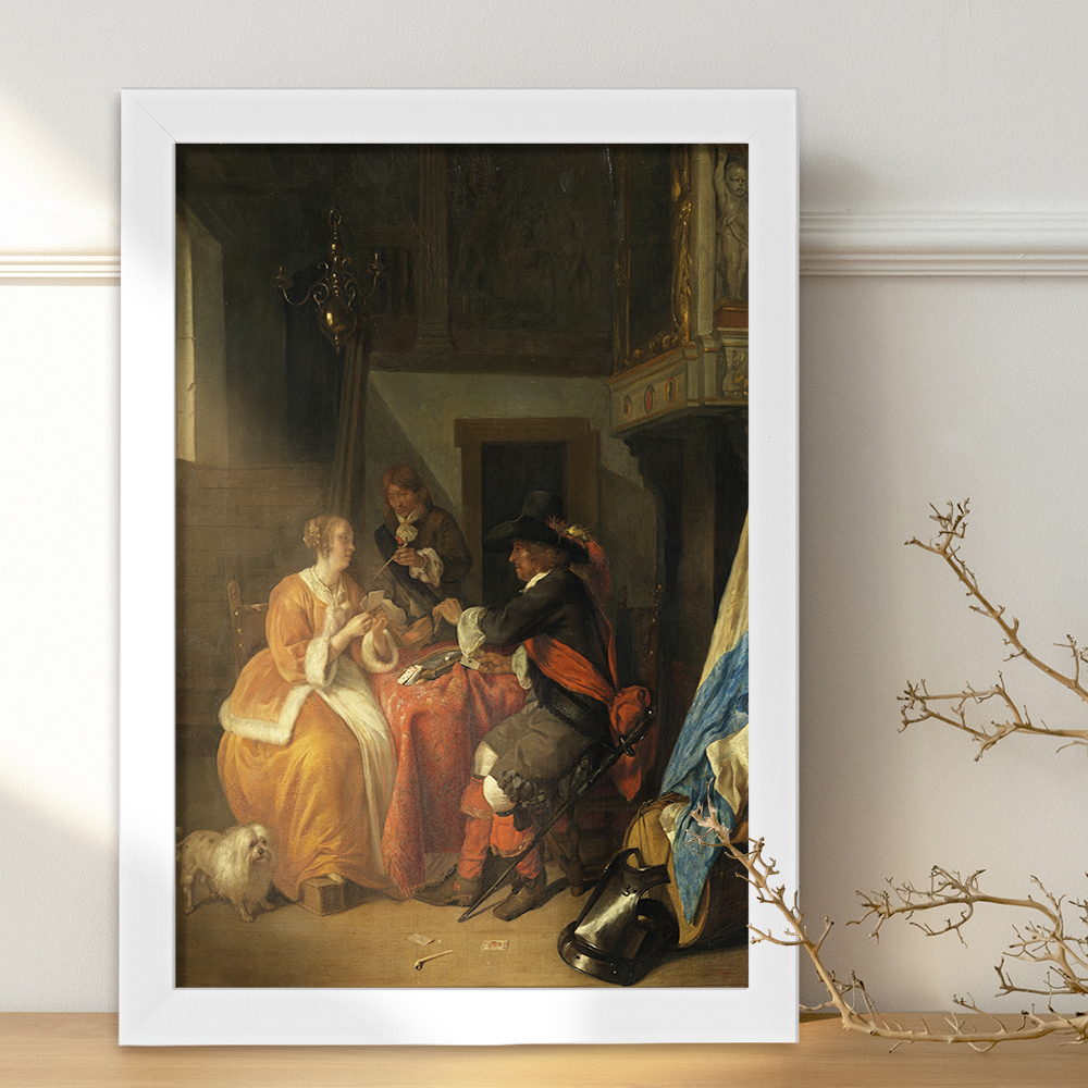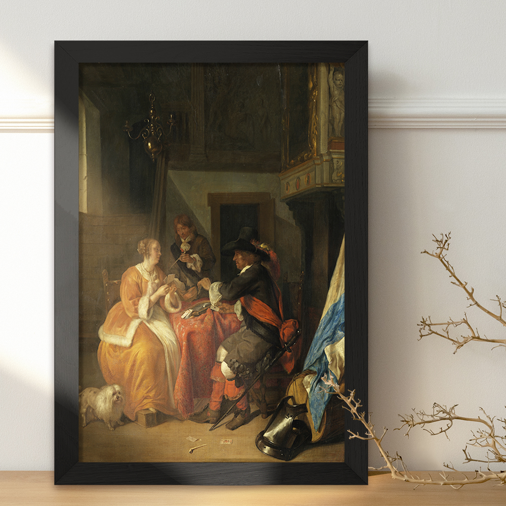 تابلو یا قاب عکس نقاشی بازی با ورق اثر گابریل متسو خندالو در ابعاد مختلف با استفاده از بهترین برند پروفیل پی وی سی دو سانتی متری بسیار مرغوب، تولید شده اند و در مونتاژ و نصب آنها نهایت دقت در قرارگیری هر چه دقیق تر لبه ها به یکدیگر صورت گرفته است. همچنین در پشت قاب ها گیره ای برای اتصال راحت به دیوار تعبیه شده است. چاپ طرح تابلوی نقاشی بازی با ورق اثر گابریل متسو با بالاترین کیفیت بوسیله چاپگرهای دیجیتال شش رنگ و کاغذ با کیفیت عکاسی انجام شده و بر روی آن شیشه ای با کیفیت و شفاف در سطح قاب قرار گرفته که از کاغذ عکس محافظت میکند. بسته بندی تابلوها جعبه های مقاوم و محکمی بوده که علاوه بر محافظتی که از بدنه قاب می کند، ظاهر جذابی دارد و تابلوی نقاشی بازی با ورق اثر گابریل متسو را بدل به محصولی مناسب هدیه کرده است. تابلوهای خندالو با تنوع طرحی بسیار بالا شامل تابلو های دکوراتیو قابل استفاده در اتاق کودک، محل کار و منازل می باشد که سلیقه هر مخاطبی را پوشش می دهد، ضمن اینکه امکان تعویض عکس موجود در قاب وجود داشته و می توان عکس های خانوادگی و … را نیز در آن قرار داد.