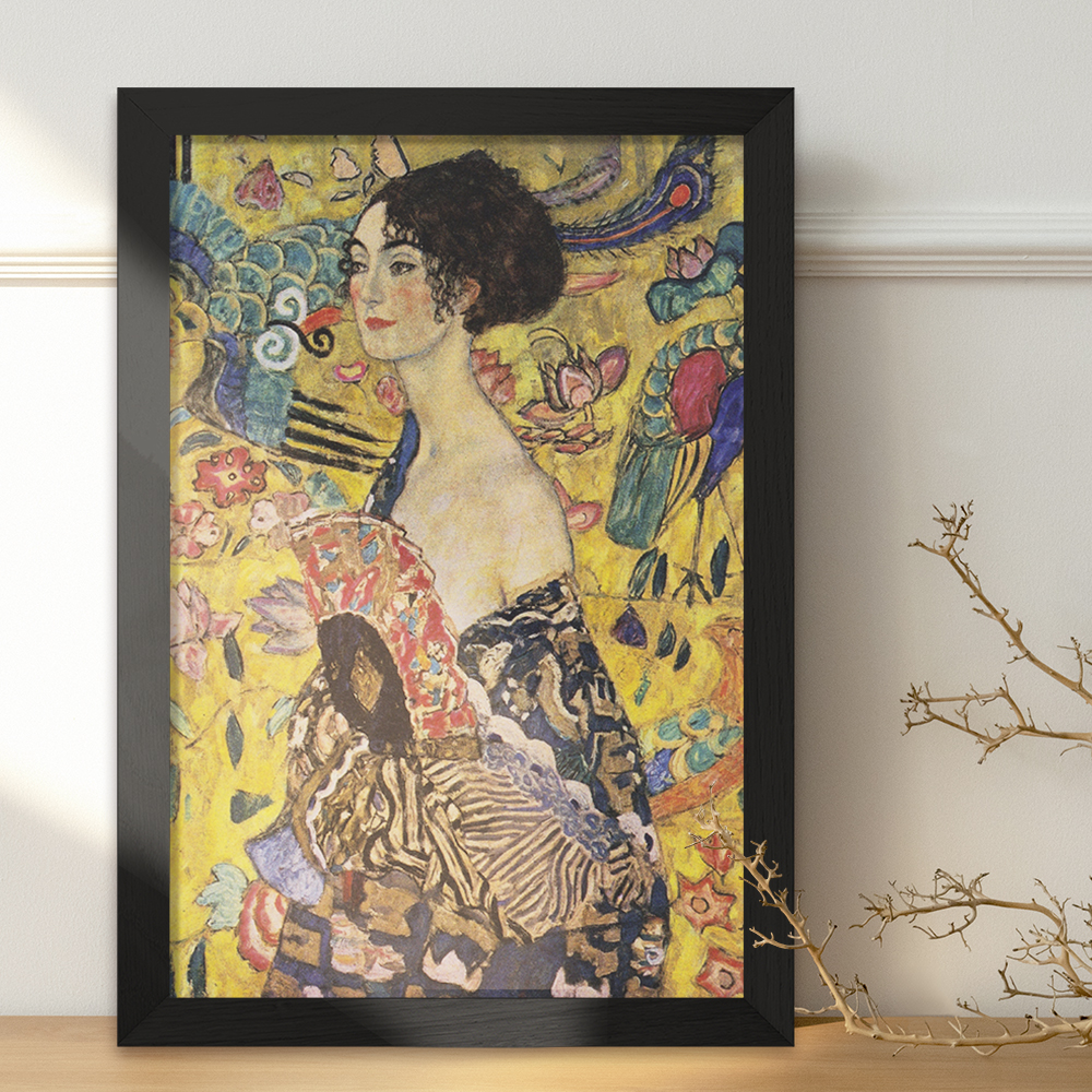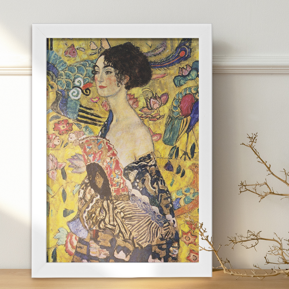 تابلو یا قاب عکس نقاشی بانو با بادبزن اثر گوستاو کلیمت خندالو در ابعاد مختلف با استفاده از بهترین برند پروفیل پی وی سی دو سانتی متری بسیار مرغوب، تولید شده اند و در مونتاژ و نصب آنها نهایت دقت در قرارگیری هر چه دقیق تر لبه ها به یکدیگر صورت گرفته است. همچنین در پشت قاب ها گیره ای برای اتصال راحت به دیوار تعبیه شده است. چاپ طرح تابلوی نقاشی بانو با بادبزن اثر گوستاو کلیمت با بالاترین کیفیت بوسیله چاپگرهای دیجیتال شش رنگ و کاغذ با کیفیت عکاسی انجام شده و بر روی آن شیشه ای با کیفیت و شفاف در سطح قاب قرار گرفته که از کاغذ عکس محافظت میکند. بسته بندی تابلوها جعبه های مقاوم و محکمی بوده که علاوه بر محافظتی که از بدنه قاب می کند، ظاهر جذابی دارد و تابلوی نقاشی بانو با بادبزن اثر گوستاو کلیمت را بدل به محصولی مناسب هدیه کرده است. تابلوهای خندالو با تنوع طرحی بسیار بالا شامل تابلو های دکوراتیو قابل استفاده در اتاق کودک، محل کار و منازل می باشد که سلیقه هر مخاطبی را پوشش می دهد، ضمن اینکه امکان تعویض عکس موجود در قاب وجود داشته و می توان عکس های خانوادگی و … را نیز در آن قرار داد.