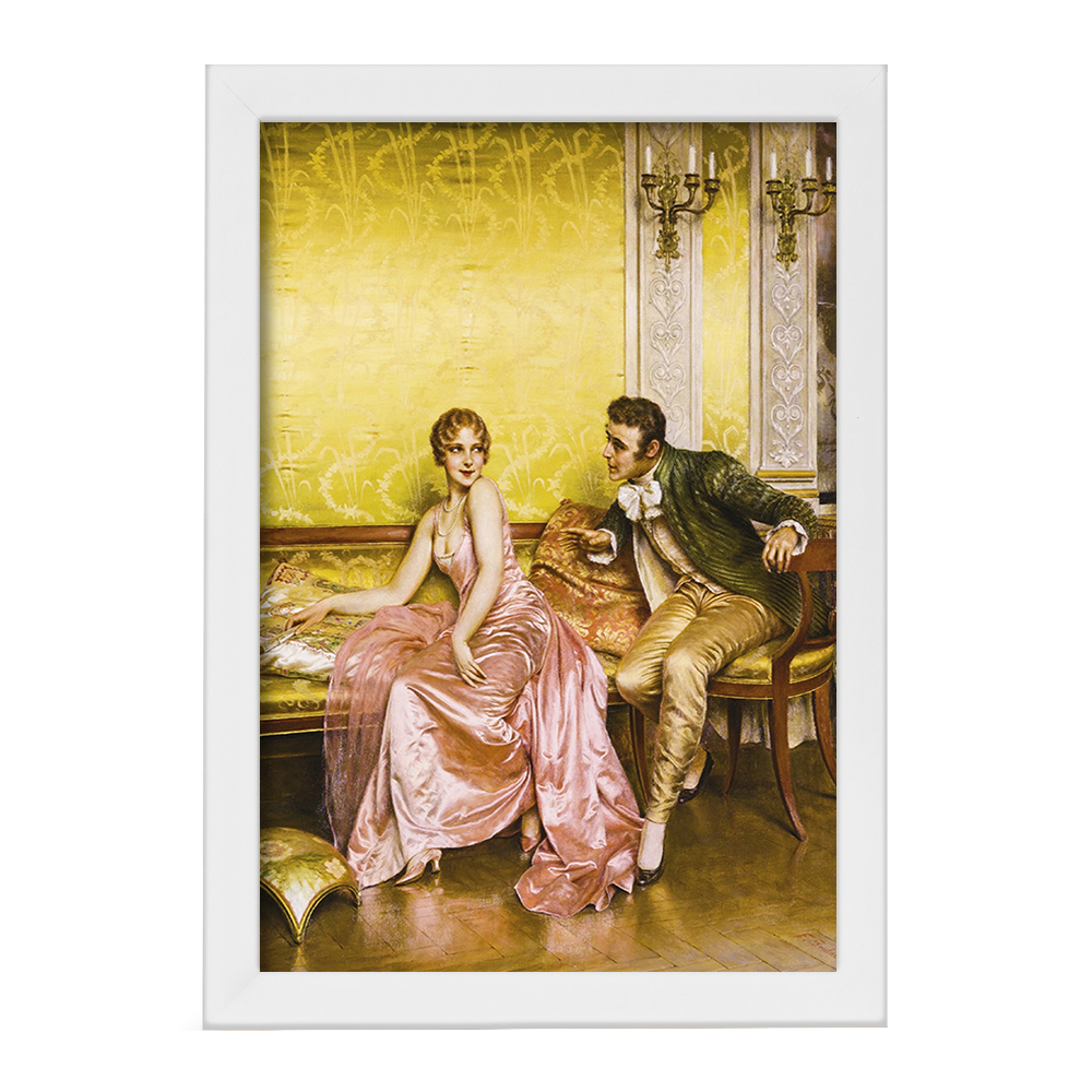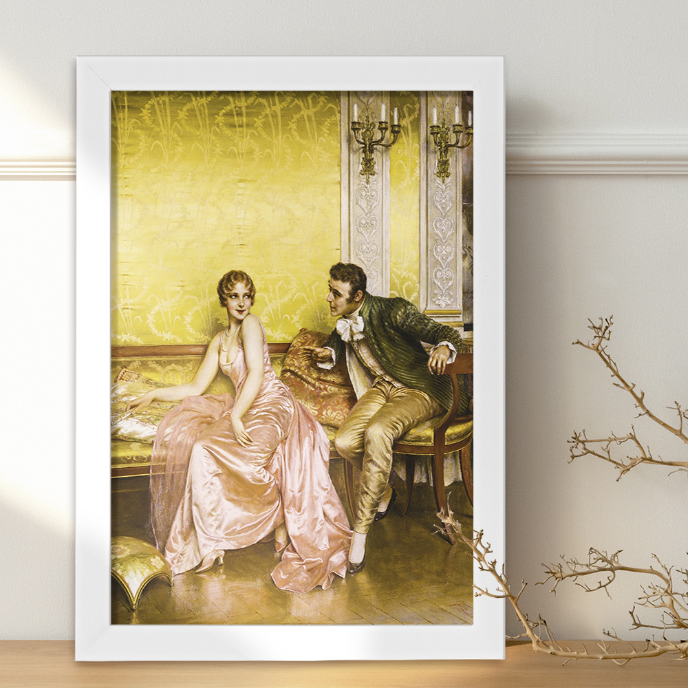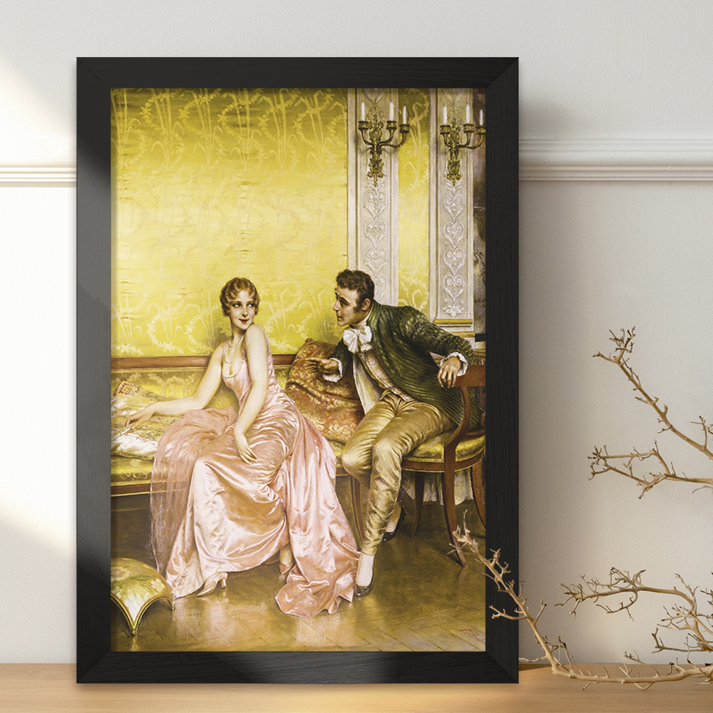 تابلو یا قاب عکس نقاشی خواستگاری اثر فردریک سولاکروا خندالو در ابعاد مختلف با استفاده از بهترین برند پروفیل پی وی سی دو سانتی متری بسیار مرغوب، تولید شده اند و در مونتاژ و نصب آنها نهایت دقت در قرارگیری هر چه دقیق تر لبه ها به یکدیگر صورت گرفته است. همچنین در پشت قاب ها گیره ای برای اتصال راحت به دیوار تعبیه شده است. چاپ طرح تابلوی نقاشی خواستگاری اثر فردریک سولاکروا با بالاترین کیفیت بوسیله چاپگرهای دیجیتال شش رنگ و کاغذ با کیفیت عکاسی انجام شده و بر روی آن شیشه ای با کیفیت و شفاف در سطح قاب قرار گرفته که از کاغذ عکس محافظت میکند. بسته بندی تابلوها جعبه های مقاوم و محکمی بوده که علاوه بر محافظتی که از بدنه قاب می کند، ظاهر جذابی دارد و تابلوی نقاشی خواستگاری اثر فردریک سولاکروا را بدل به محصولی مناسب هدیه کرده است. تابلوهای خندالو با تنوع طرحی بسیار بالا شامل تابلو های دکوراتیو قابل استفاده در اتاق کودک، محل کار و منازل می باشد که سلیقه هر مخاطبی را پوشش می دهد، ضمن اینکه امکان تعویض عکس موجود در قاب وجود داشته و می توان عکس های خانوادگی و … را نیز در آن قرار داد.