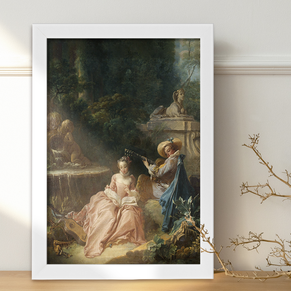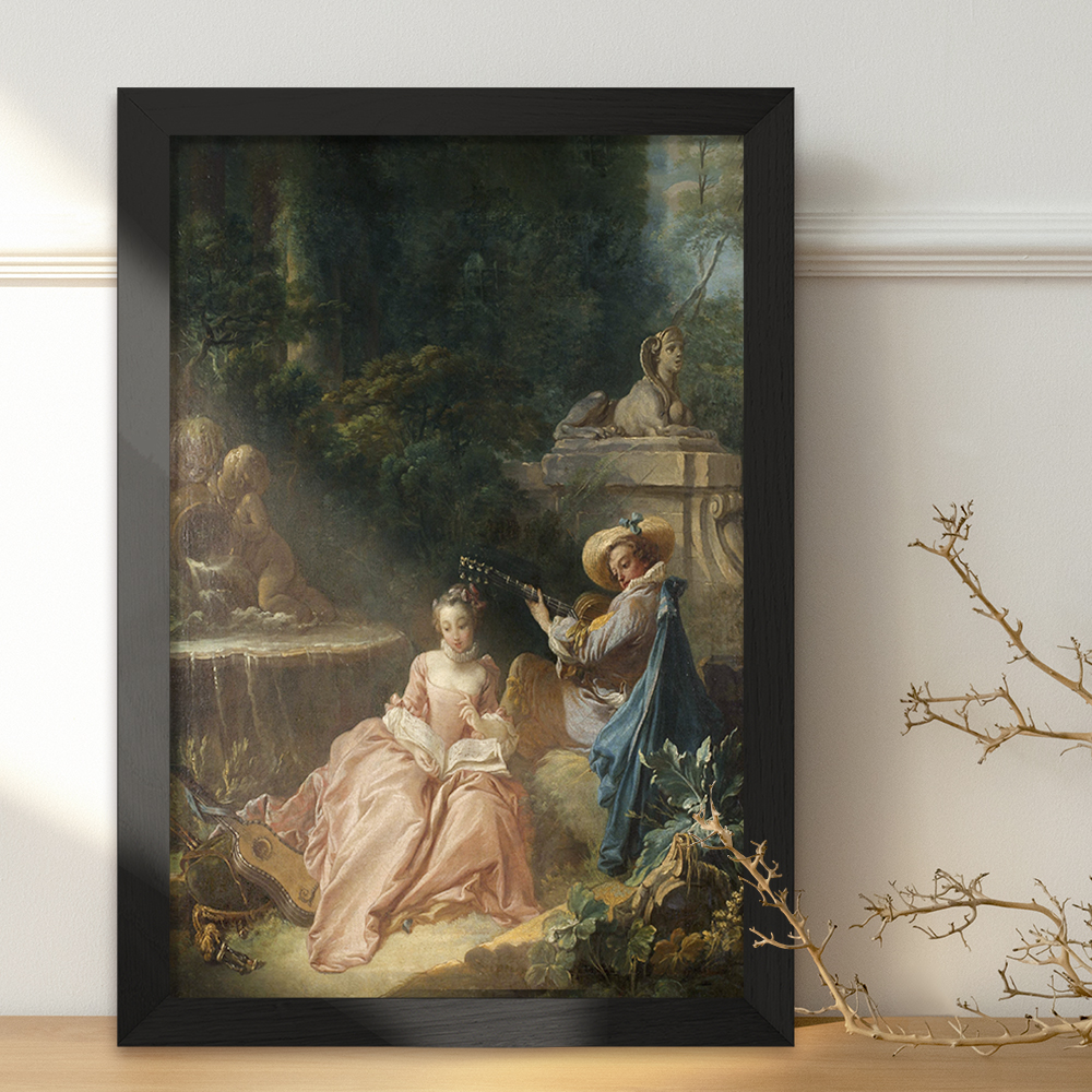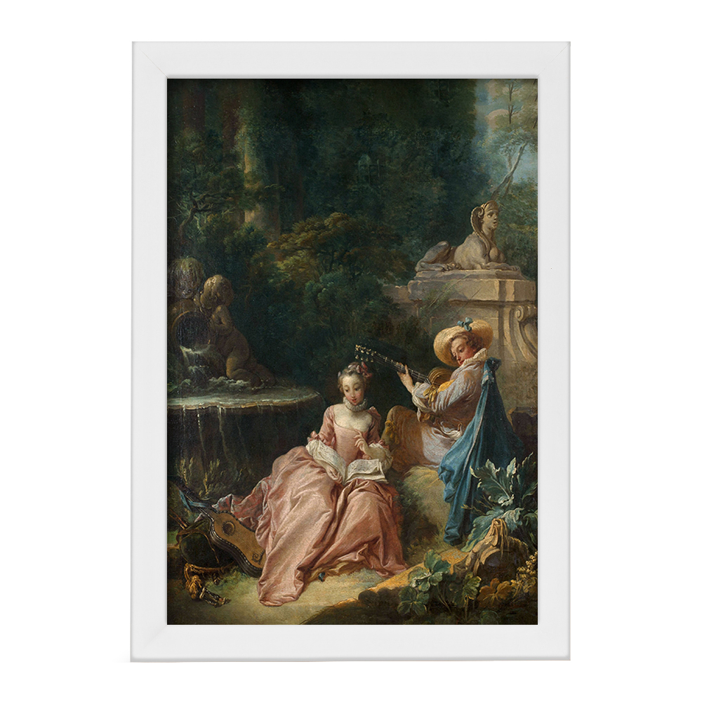 تابلو یا قاب عکس نقاشی درس موسیقی اثر فرانسوا بوشه خندالو در ابعاد مختلف با استفاده از بهترین برند پروفیل پی وی سی دو سانتی متری بسیار مرغوب، تولید شده اند و در مونتاژ و نصب آنها نهایت دقت در قرارگیری هر چه دقیق تر لبه ها به یکدیگر صورت گرفته است. همچنین در پشت قاب ها گیره ای برای اتصال راحت به دیوار تعبیه شده است. چاپ طرح تابلوی نقاشی درس موسیقی اثر فرانسوا بوشه با بالاترین کیفیت بوسیله چاپگرهای دیجیتال شش رنگ و کاغذ با کیفیت عکاسی انجام شده و بر روی آن شیشه ای با کیفیت و شفاف در سطح قاب قرار گرفته که از کاغذ عکس محافظت میکند. بسته بندی تابلوها جعبه های مقاوم و محکمی بوده که علاوه بر محافظتی که از بدنه قاب می کند، ظاهر جذابی دارد و تابلوی نقاشی درس موسیقی اثر فرانسوا بوشه را بدل به محصولی مناسب هدیه کرده است. تابلوهای خندالو با تنوع طرحی بسیار بالا شامل تابلو های دکوراتیو قابل استفاده در اتاق کودک، محل کار و منازل می باشد که سلیقه هر مخاطبی را پوشش می دهد، ضمن اینکه امکان تعویض عکس موجود در قاب وجود داشته و می توان عکس های خانوادگی و … را نیز در آن قرار داد.