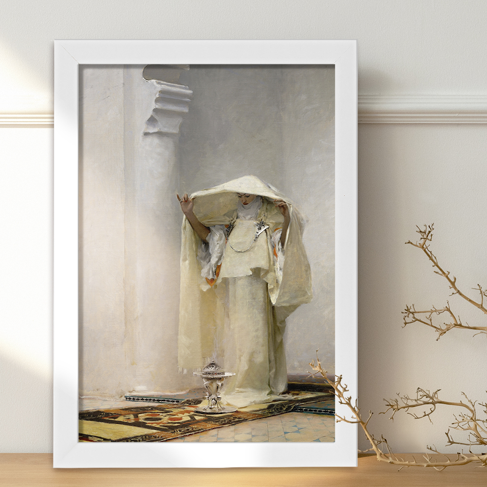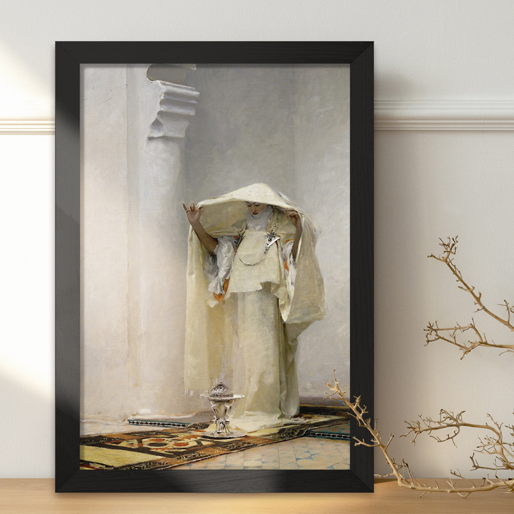 تابلو یا قاب عکس نقاشی دود عود عنبر اثر جان سینگر سارجنت خندالو در ابعاد مختلف با استفاده از بهترین برند پروفیل پی وی سی دو سانتی متری بسیار مرغوب، تولید شده اند و در مونتاژ و نصب آنها نهایت دقت در قرارگیری هر چه دقیق تر لبه ها به یکدیگر صورت گرفته است. همچنین در پشت قاب ها گیره ای برای اتصال راحت به دیوار تعبیه شده است. چاپ طرح تابلوی نقاشی دود عود عنبر اثر جان سینگر سارجنت با بالاترین کیفیت بوسیله چاپگرهای دیجیتال شش رنگ و کاغذ با کیفیت عکاسی انجام شده و بر روی آن شیشه ای با کیفیت و شفاف در سطح قاب قرار گرفته که از کاغذ عکس محافظت میکند. بسته بندی تابلوها جعبه های مقاوم و محکمی بوده که علاوه بر محافظتی که از بدنه قاب می کند، ظاهر جذابی دارد و تابلوی نقاشی دود عود عنبر اثر جان سینگر سارجنت را بدل به محصولی مناسب هدیه کرده است. تابلوهای خندالو با تنوع طرحی بسیار بالا شامل تابلو های دکوراتیو قابل استفاده در اتاق کودک، محل کار و منازل می باشد که سلیقه هر مخاطبی را پوشش می دهد، ضمن اینکه امکان تعویض عکس موجود در قاب وجود داشته و می توان عکس های خانوادگی و … را نیز در آن قرار داد.
