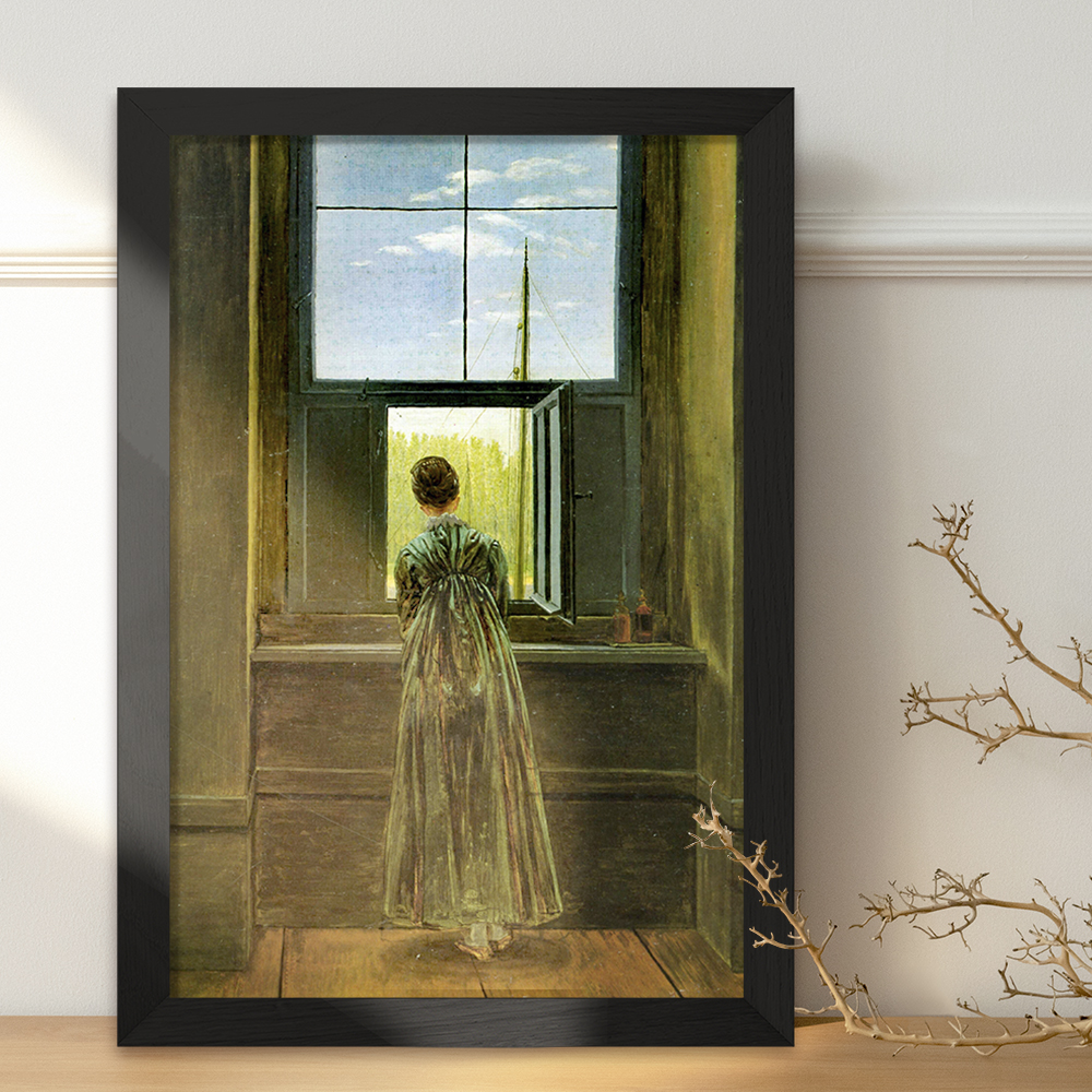 تابلو یا قاب عکس نقاشی زنی در کنار پنجره اثر کاسپار دیوید فردریش خندالو در ابعاد مختلف با استفاده از بهترین برند پروفیل پی وی سی دو سانتی متری بسیار مرغوب، تولید شده اند و در مونتاژ و نصب آنها نهایت دقت در قرارگیری هر چه دقیق تر لبه ها به یکدیگر صورت گرفته است. همچنین در پشت قاب ها گیره ای برای اتصال راحت به دیوار تعبیه شده است. چاپ طرح تابلوی نقاشی زنی در کنار پنجره اثر کاسپار دیوید فردریش با بالاترین کیفیت بوسیله چاپگرهای دیجیتال شش رنگ و کاغذ با کیفیت عکاسی انجام شده و بر روی آن شیشه ای با کیفیت و شفاف در سطح قاب قرار گرفته که از کاغذ عکس محافظت میکند. بسته بندی تابلوها جعبه های مقاوم و محکمی بوده که علاوه بر محافظتی که از بدنه قاب می کند، ظاهر جذابی دارد و تابلوی نقاشی زنی در کنار پنجره اثر کاسپار دیوید فردریش را بدل به محصولی مناسب هدیه کرده است. تابلوهای خندالو با تنوع طرحی بسیار بالا شامل تابلو های دکوراتیو قابل استفاده در اتاق کودک، محل کار و منازل می باشد که سلیقه هر مخاطبی را پوشش می دهد، ضمن اینکه امکان تعویض عکس موجود در قاب وجود داشته و می توان عکس های خانوادگی و … را نیز در آن قرار داد.