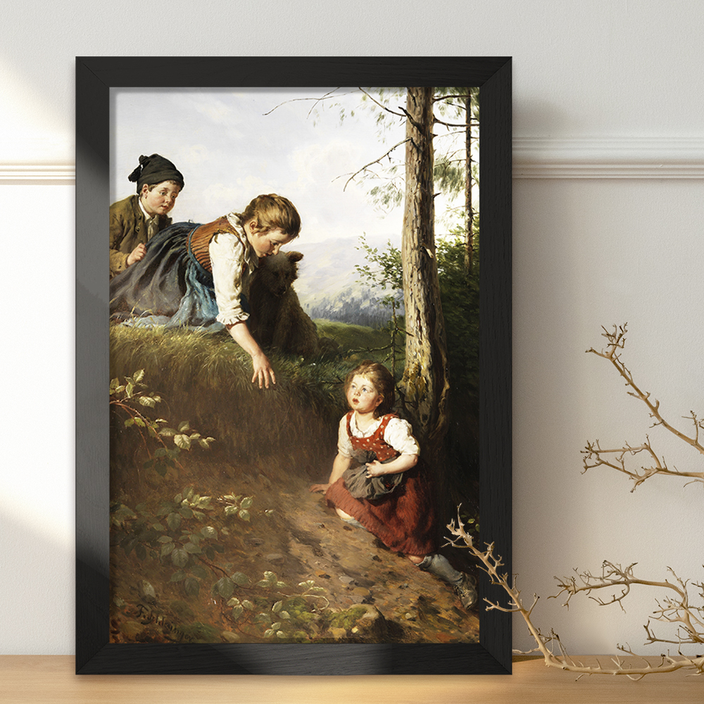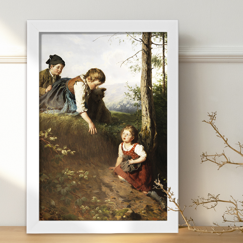 تابلو نقاشی سه کودک در حال چیدن توت اثر فلیکس شلزینگر