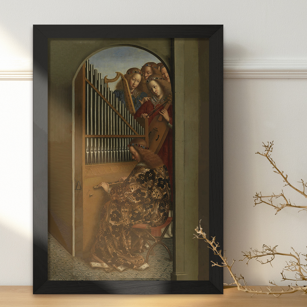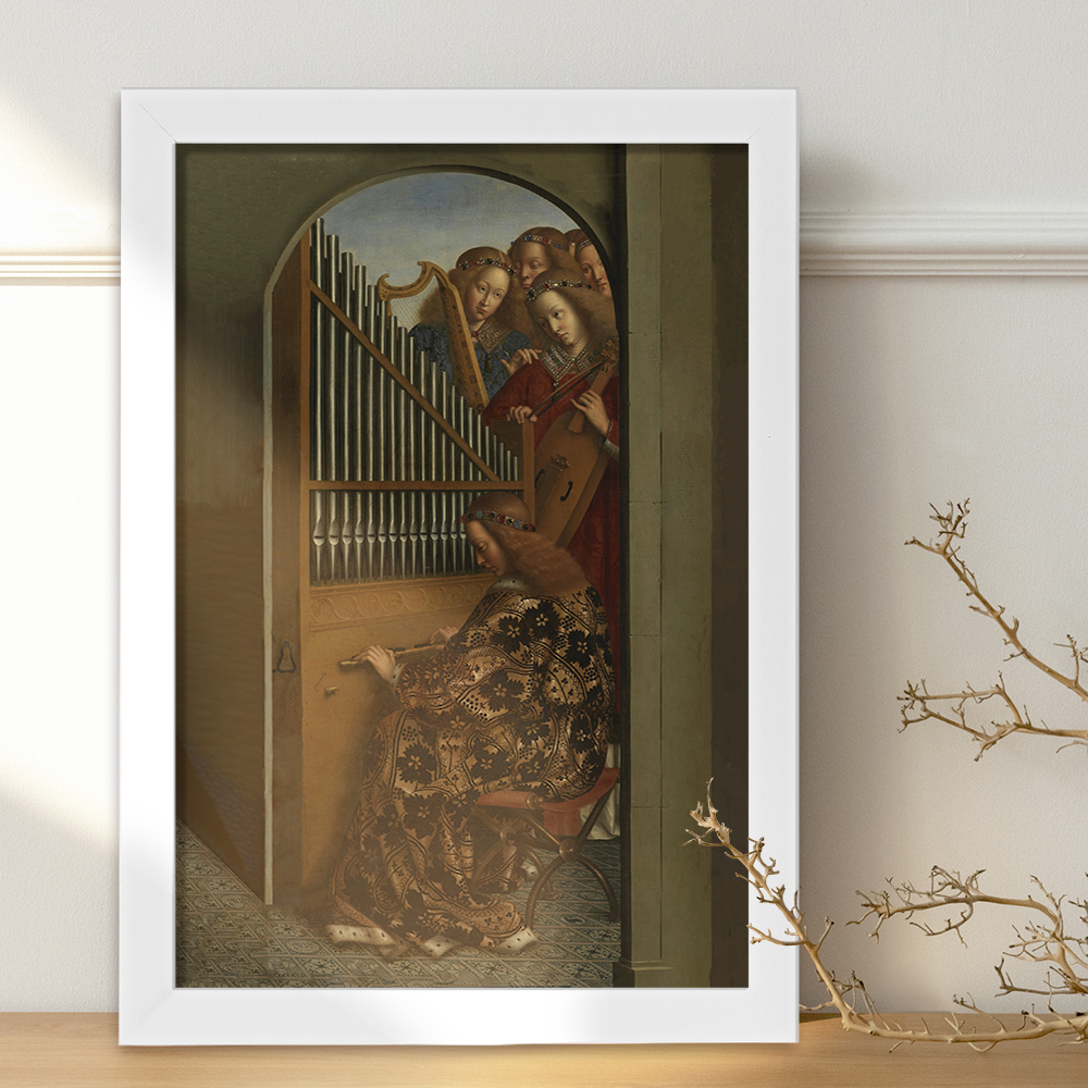 تابلو یا قاب عکس نقاشی فرشتگان محراب اثر یان وان آیک خندالو در ابعاد مختلف با استفاده از بهترین برند پروفیل پی وی سی دو سانتی متری بسیار مرغوب، تولید شده اند و در مونتاژ و نصب آنها نهایت دقت در قرارگیری هر چه دقیق تر لبه ها به یکدیگر صورت گرفته است. همچنین در پشت قاب ها گیره ای برای اتصال راحت به دیوار تعبیه شده است. چاپ طرح تابلوی نقاشی فرشتگان محراب اثر یان وان آیک با بالاترین کیفیت بوسیله چاپگرهای دیجیتال شش رنگ و کاغذ با کیفیت عکاسی انجام شده و بر روی آن شیشه ای با کیفیت و شفاف در سطح قاب قرار گرفته که از کاغذ عکس محافظت میکند. بسته بندی تابلوها جعبه های مقاوم و محکمی بوده که علاوه بر محافظتی که از بدنه قاب می کند، ظاهر جذابی دارد و تابلوی نقاشی فرشتگان محراب اثر یان وان آیک را بدل به محصولی مناسب هدیه کرده است. تابلوهای خندالو با تنوع طرحی بسیار بالا شامل تابلو های دکوراتیو قابل استفاده در اتاق کودک، محل کار و منازل می باشد که سلیقه هر مخاطبی را پوشش می دهد، ضمن اینکه امکان تعویض عکس موجود در قاب وجود داشته و می توان عکس های خانوادگی و … را نیز در آن قرار داد.