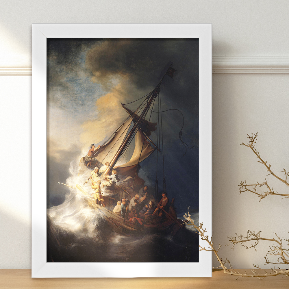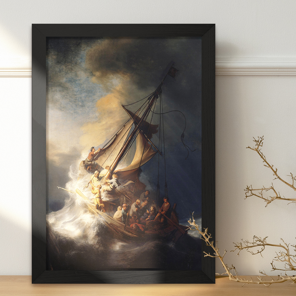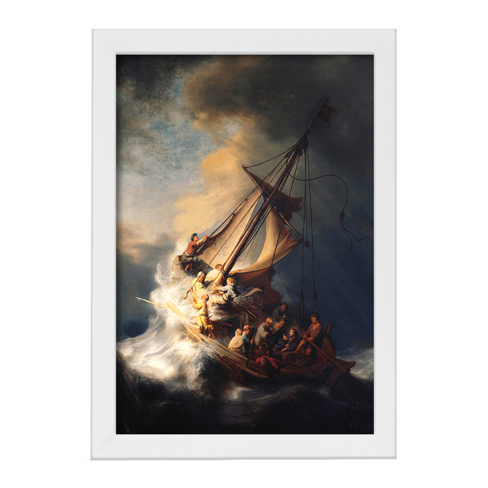 تابلو یا قاب عکس نقاشی مسیح در طوفان در دریای جلیل اثر رمبراند خندالو در ابعاد مختلف با استفاده از بهترین برند پروفیل پی وی سی دو سانتی متری بسیار مرغوب، تولید شده اند و در مونتاژ و نصب آنها نهایت دقت در قرارگیری هر چه دقیق تر لبه ها به یکدیگر صورت گرفته است. همچنین در پشت قاب ها گیره ای برای اتصال راحت به دیوار تعبیه شده است. چاپ طرح تابلوی نقاشی مسیح در طوفان در دریای جلیل اثر رمبراند با بالاترین کیفیت بوسیله چاپگرهای دیجیتال شش رنگ و کاغذ با کیفیت عکاسی انجام شده و بر روی آن شیشه ای با کیفیت و شفاف در سطح قاب قرار گرفته که از کاغذ عکس محافظت میکند. بسته بندی تابلوها جعبه های مقاوم و محکمی بوده که علاوه بر محافظتی که از بدنه قاب می کند، ظاهر جذابی دارد و تابلوی نقاشی مسیح در طوفان در دریای جلیل اثر رمبراند را بدل به محصولی مناسب هدیه کرده است. تابلوهای خندالو با تنوع طرحی بسیار بالا شامل تابلو های دکوراتیو قابل استفاده در اتاق کودک، محل کار و منازل می باشد که سلیقه هر مخاطبی را پوشش می دهد، ضمن اینکه امکان تعویض عکس موجود در قاب وجود داشته و می توان عکس های خانوادگی و … را نیز در آن قرار داد.