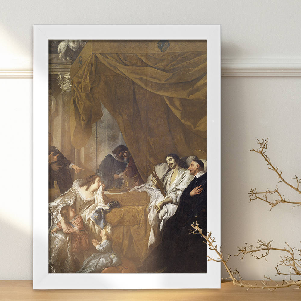 تابلو یا قاب عکس نقاشی وینسنت در بستر مرگ لویی سیزدهم اثر ژان فرانسوا دو تروی خندالو در ابعاد مختلف با استفاده از بهترین برند پروفیل پی وی سی دو سانتی متری بسیار مرغوب، تولید شده اند و در مونتاژ و نصب آنها نهایت دقت در قرارگیری هر چه دقیق تر لبه ها به یکدیگر صورت گرفته است. همچنین در پشت قاب ها گیره ای برای اتصال راحت به دیوار تعبیه شده است. چاپ طرح تابلوی نقاشی وینسنت در بستر مرگ لویی سیزدهم اثر ژان فرانسوا دو تروی با بالاترین کیفیت بوسیله چاپگرهای دیجیتال شش رنگ و کاغذ با کیفیت عکاسی انجام شده و بر روی آن شیشه ای با کیفیت و شفاف در سطح قاب قرار گرفته که از کاغذ عکس محافظت میکند. بسته بندی تابلوها جعبه های مقاوم و محکمی بوده که علاوه بر محافظتی که از بدنه قاب می کند، ظاهر جذابی دارد و تابلوی نقاشی وینسنت در بستر مرگ لویی سیزدهم اثر ژان فرانسوا دو تروی را بدل به محصولی مناسب هدیه کرده است. تابلوهای خندالو با تنوع طرحی بسیار بالا شامل تابلو های دکوراتیو قابل استفاده در اتاق کودک، محل کار و منازل می باشد که سلیقه هر مخاطبی را پوشش می دهد، ضمن اینکه امکان تعویض عکس موجود در قاب وجود داشته و می توان عکس های خانوادگی و … را نیز در آن قرار داد.