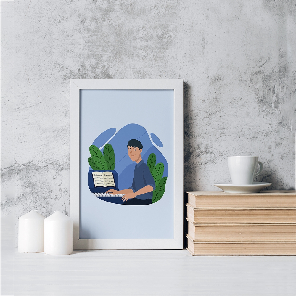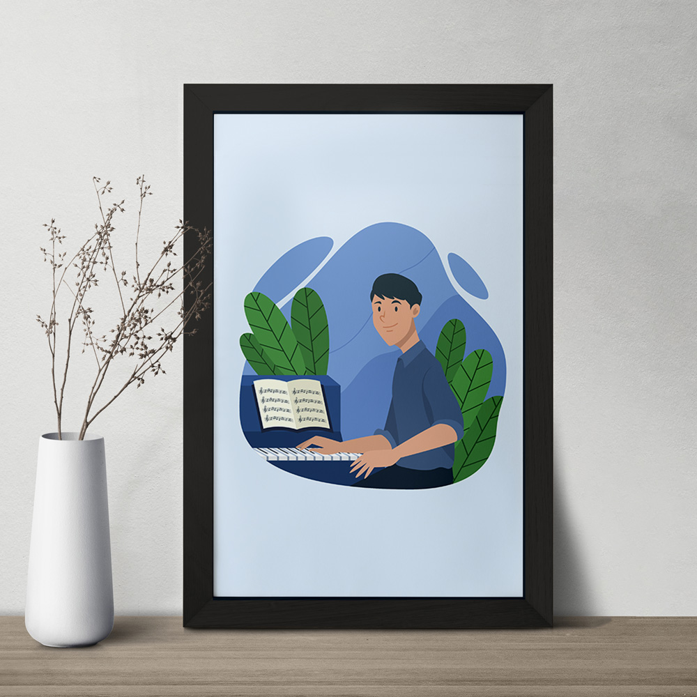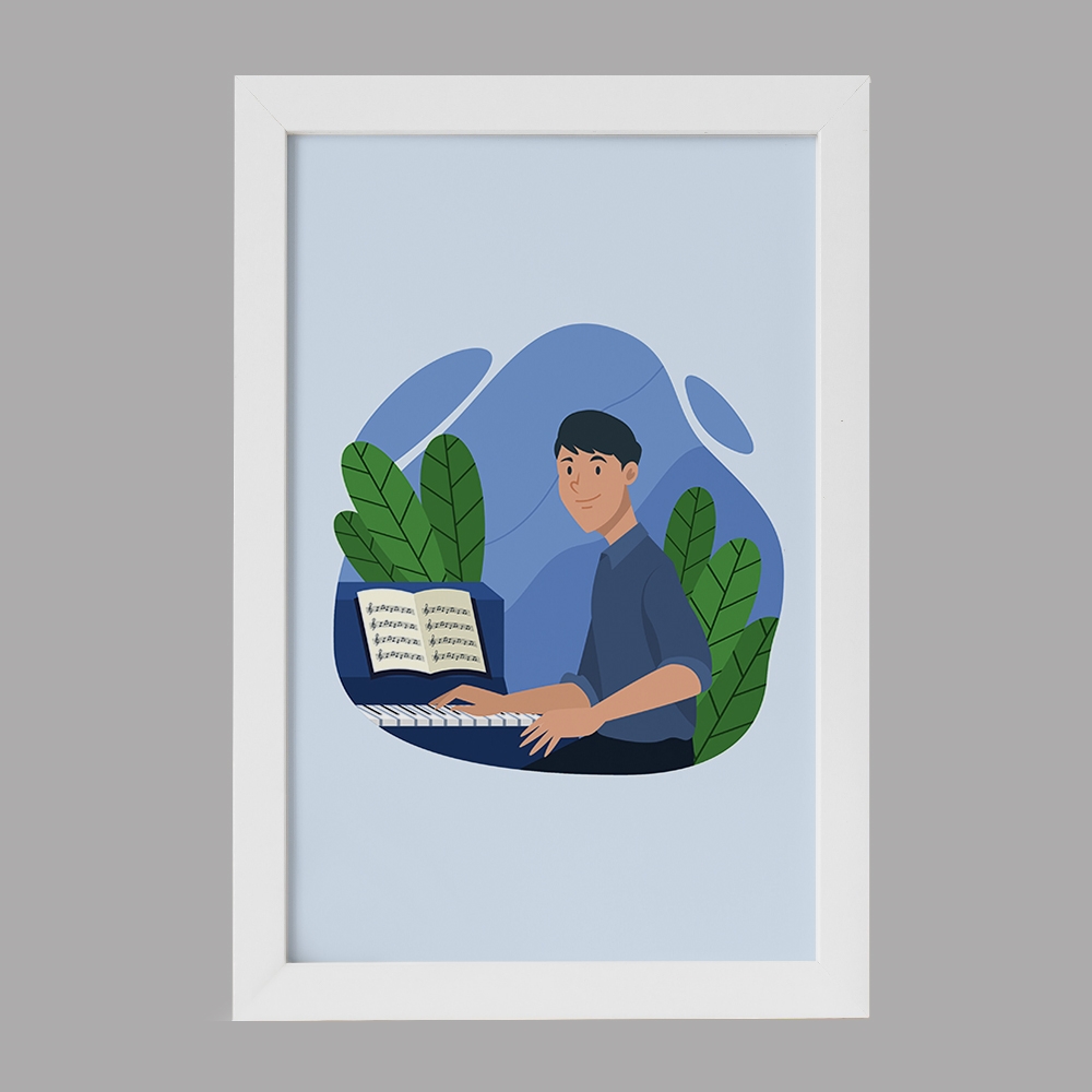 تابلو یا قاب عکس نوازنده خندالو در ابعاد مختلف با استفاده از بهترین برند پروفیل پی وی سی دو سانتی متری بسیار مرغوب، تولید شده اند و در مونتاژ و نصب آنها نهایت دقت در قرارگیری هر چه دقیق تر لبه ها به یکدیگر صورت گرفته است. همچنین در پشت قاب ها گیره ای برای اتصال راحت به دیوار تعبیه شده است.